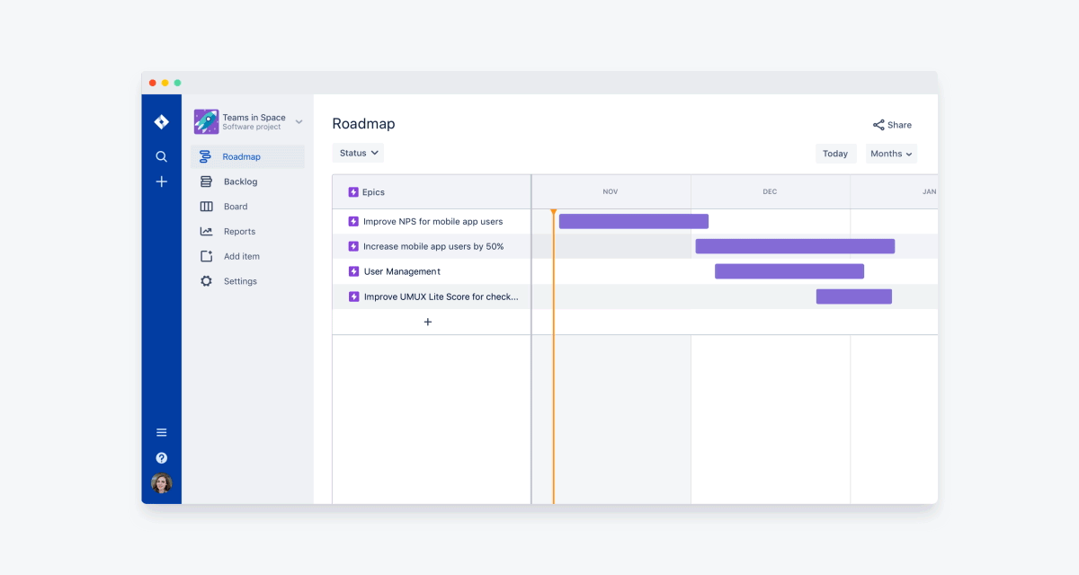 Bahsettiğimiz özelliklerin yanı sıra Jira'ya yol haritası özelliği de eklenmiş durumda. Ekiplerin büyük resmi görmesi için tasarlanan bu özellik, iş akışını ve iş yükünü kolayca düzenleyebilmenizi sağlıyor.