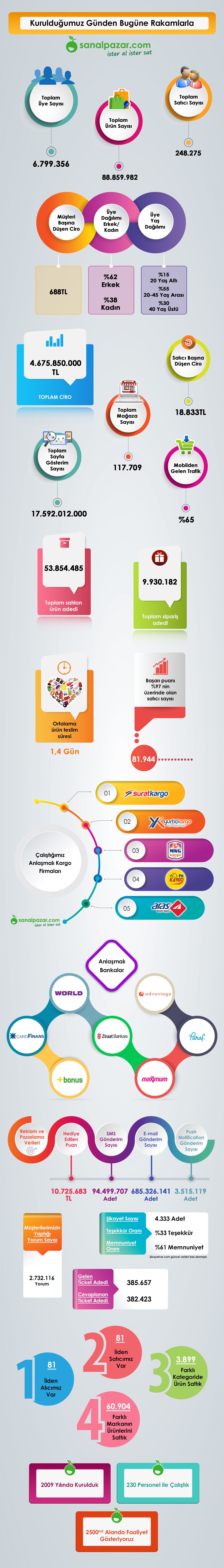 2009 yılında kurulan ve 2 bin 500 metrekarelik alanda, 230 kişilik ekibiyle faaliyet gösteren Sanalpazar.com, toplam üye sayısı 6 milyon 799 bin 356, toplam 248 bin 275 satıcı ve 88 milyon 859 bin 982 ürün bulunuyor. Toplam cironun 4 milyar 675 milyon 850 bin olduğu platformda, müşteri başına düşen ciro sayısının 688 TL iken, satıcı başına düşen ciro sayısı ise 18 bin 833 TL olarak açıklanıyor.