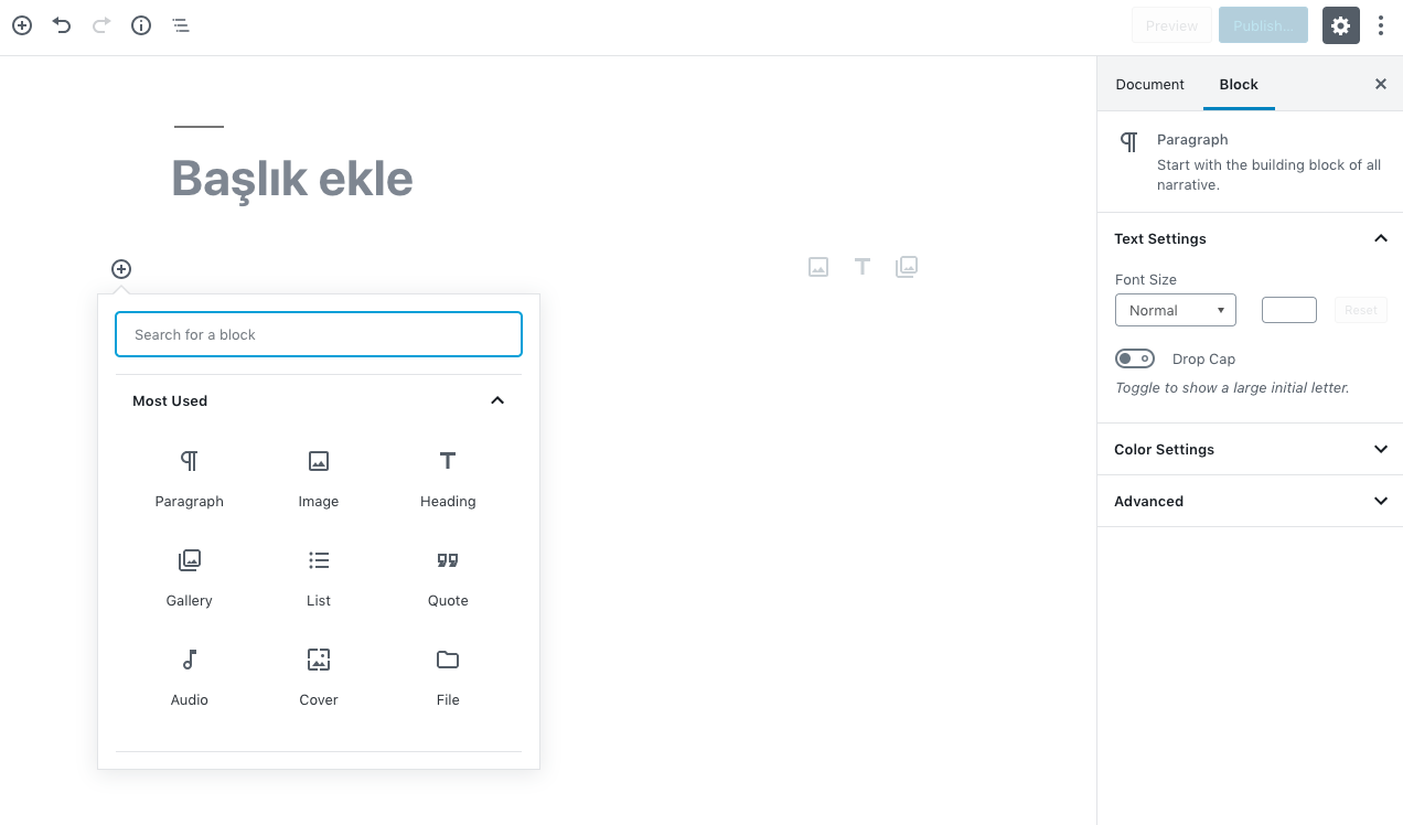 Büyük yenilikler içeren editör tarafı artık blok tabanlı çalışıyor. Blok tabanlı editörde multimedya, text, alıntı gibi her bir içerik kendi bloğunda yer alıyor. Daha akıcı bir düzenleme deneyimi sunan yeni editör eski içeriklerinizin görünümünü etkilemeyecek, sadece blok tabanlı yapısı sayesinde kullanıcılarına daha esnek bir içerik yaratım deneyimi sunacak.Halihazırda bir çok blok yapısı barındıran versiyon ilerleyen zamanlarda açık kaynak ekosistemin katkılarıyla daha fazla blok tipine de sahip olacak.