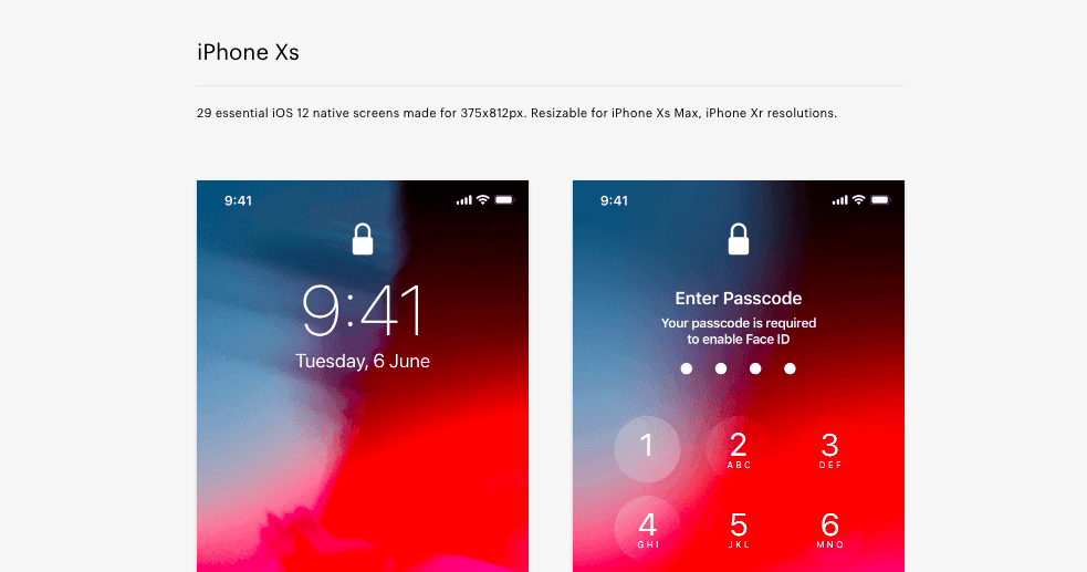iOS 12'de yer alan tüm çekirdek öğelerin ve ekran görüntülerinin hazırlandığı bu galeride 29 iPhone Xs, 29 iPhone 8 ve toplam 217 tasarım elementi bulunuyor.