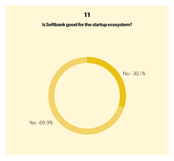 SoftBank, yatırım fonu Vision Fund'ı 2016'da yayına aldığından bugüne kadar birçok girişimin büyümesine katkı sağladı. Anket katılımcılarının yüzde 70'i SoftBank'in bu noktada çok önemli bir yere sahip olduğunu düşünüyor.