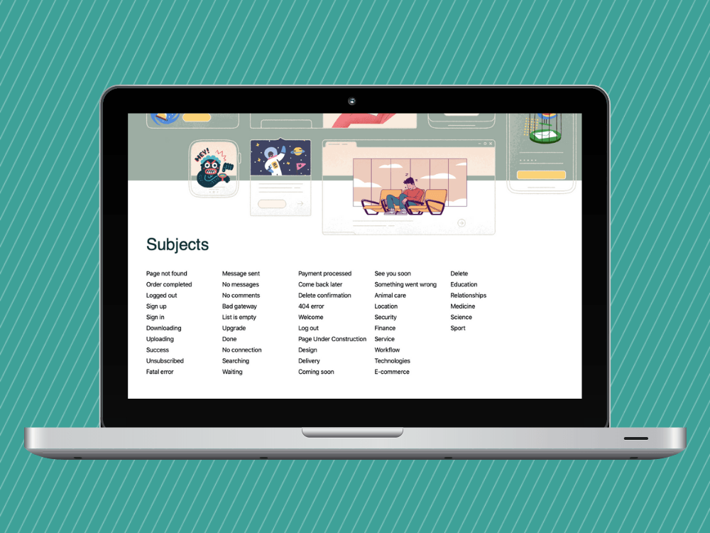 Ouch!'u, özellikle arayüz oluşturanların tercih edeceğini söylememizin nedeni ise sitede "Sayfa bulunamadı!" ya da "Giriş Yap" gibi arayüzlerde karşılaşılabilecek belli temalara uygun illüstrasyon aratmanızın mümkün olması. Bunun yanı sıra ilüstrasyonların belli başlıklar altında toplandığını da belirtelim. Böylece ilişkiler, hayvan bakımı, finans veya eğitim konulu çizimleri de sitede kolayca bulabiliyorsunuz.