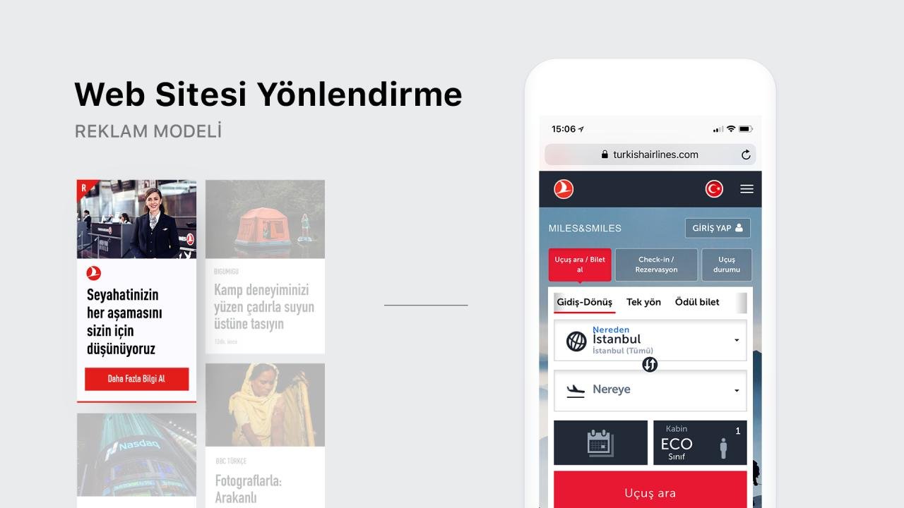 Doğrudan karşılama sayfası ya da uygulama mağazasına yönlendirme yapmak isteyen markalar içinse web sitesine ya da mobil uygulamaya yönlendirme seçeneği sunuluyor.