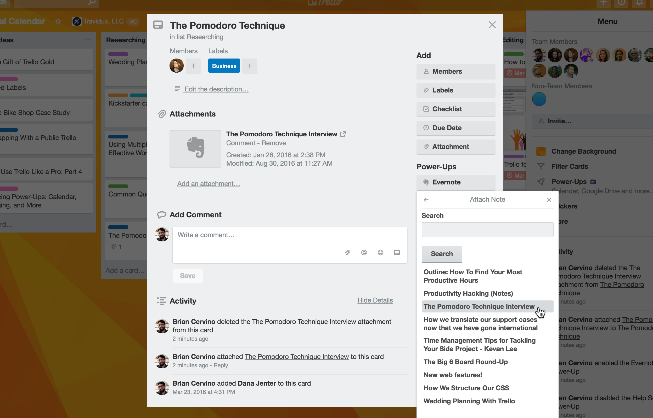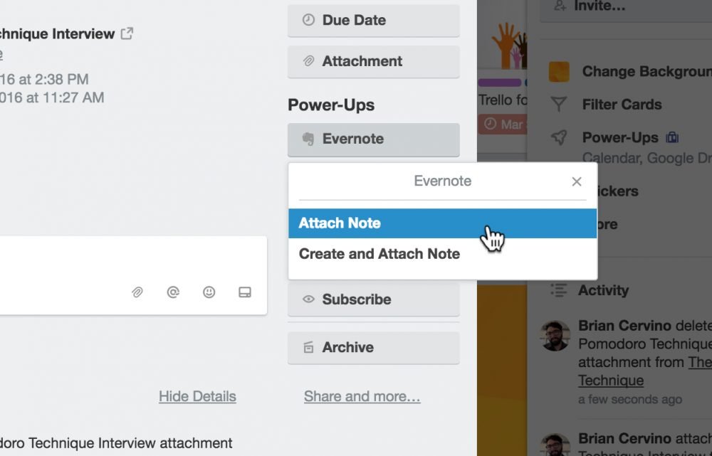 Popüler verimlilik uygulaması Evernote'un yayınladığı bu Trello Power-Up'ı sayesinde notlarınızı Trello kartlarına kolayca ekleyebiliyor ya da kartlar üzerinden yeni notlar oluşturabiliyorsunuz. Aynı zamanda kartlara eklenen notlardaki bilgileri de gerçek zamanlı olarak görüntüleyebiliyorsunuz.