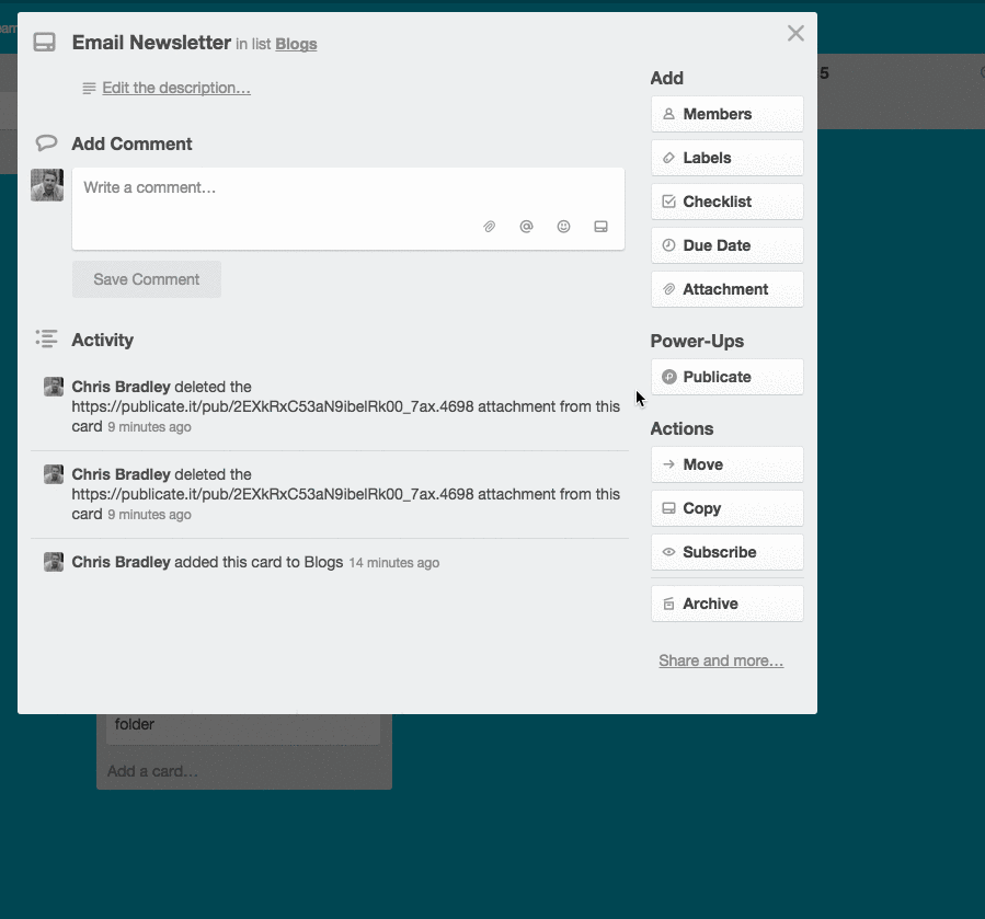 Publicate Power-Up’ı sayesinde oluşturduğunuz herhangi bir bülteni Trello Kartlarına ekleyebiliyor ve bu bültenlerin gerçek zamanlı olarak önizlemesini yapabiliyorsunuz. Aynı şekilde bir Publication bültenini kart üzerinden kolayca görüntüleyebiliyor ve düzenleyebiliyorsunuz.
