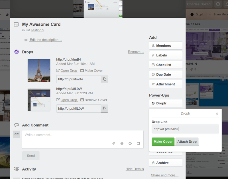 Droplr Power Up Trello kartlarına eklediğiniz kısaltılmış linkleri, görünüm olarak zengin içeriklere dönüştürüyor. Bu Power Up ile birlikte linkleriniz hakkındaki bilgileri kartlarınızda kolayca görüntüleyebiliyor ve tek bir tıkla panonuzdaki kısa linkleri kopyalayabiliyorsunuz. Aynı şekilde linkleri yeni bir pencerede açarak detaylı bir şekilde inceleybilmeniz de sağlanıyor.