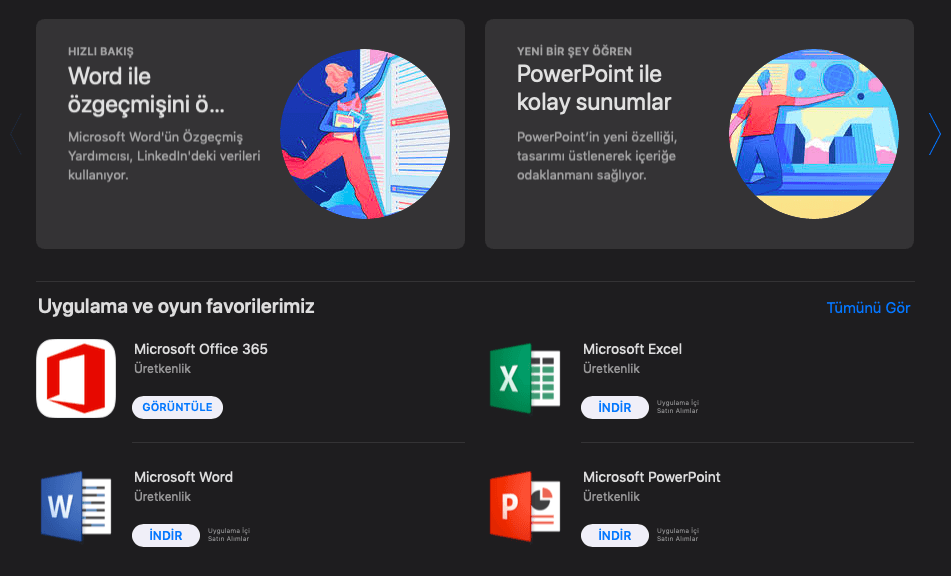 App Store üzerinden indirilen Microsoft Office ürünleri, 359,99 TL'den başlayan fiyatlarla kullanıcıya sunuluyor. Aslında ürünleri bilgisayarınıza ücretsiz olarak indirebiliyorsunuz, ancak uygulamaları kullanmak istediğinizde ödeme planı seçmeniz isteniyor. Seçilen planlara göre her kullanıcının 1 terabayt yükleme alanı bulunuyor. Dahası kullanıcı, tüm Apple, Android ve Windows cihazlar üzerinden aboneliğine erişebiliyor ve gittiği her yerde dosyalarına ulaşabiliyor.