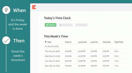 Bu konuda bir başka örnek ise büyük bir açık hava perakendecisinde Açık Hava Programları Eğitmeni olan Ben Lee'den geliyor.Tüm hafta boyunca Coda üzerinde çalışma saatlerini kaydeden Ben Lee, bu dosyayı her hafta otomatik olarak işverenine mail atabiliyor. Böylece her hafta yeniden e-posta ve çizelge oluşturmanın iş yükü ortadan kalkmış oluyor. Siz de Coda'da da bu örneklere benzer otomasyonlar oluşturmak istiyorsanız Automation starter kit dosyasına göz atabilirsiniz.