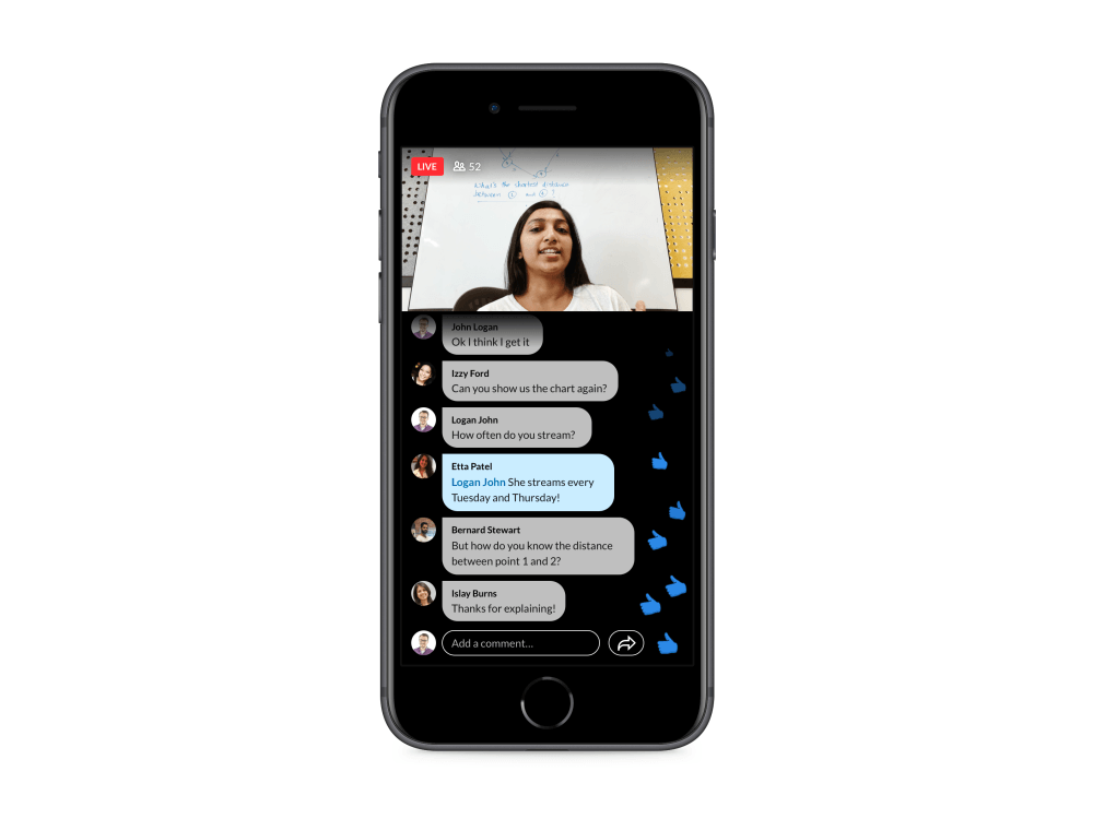LinkedIn'in Canlı Yayın özelliğinin diğer platformlardaki gibi havada uçuşan beğenilere ve gerçek zamanlı olarak ekrana yansıyan yorumlara sahip olduğunu ekleyelim. Buna ek olarak canlı yayın sahiplerinin gerçek zamanlı olarak yorum moderasyonu yapabildiğini ve istenmeyen yorumların anında silinebildiğini ekleyelim.