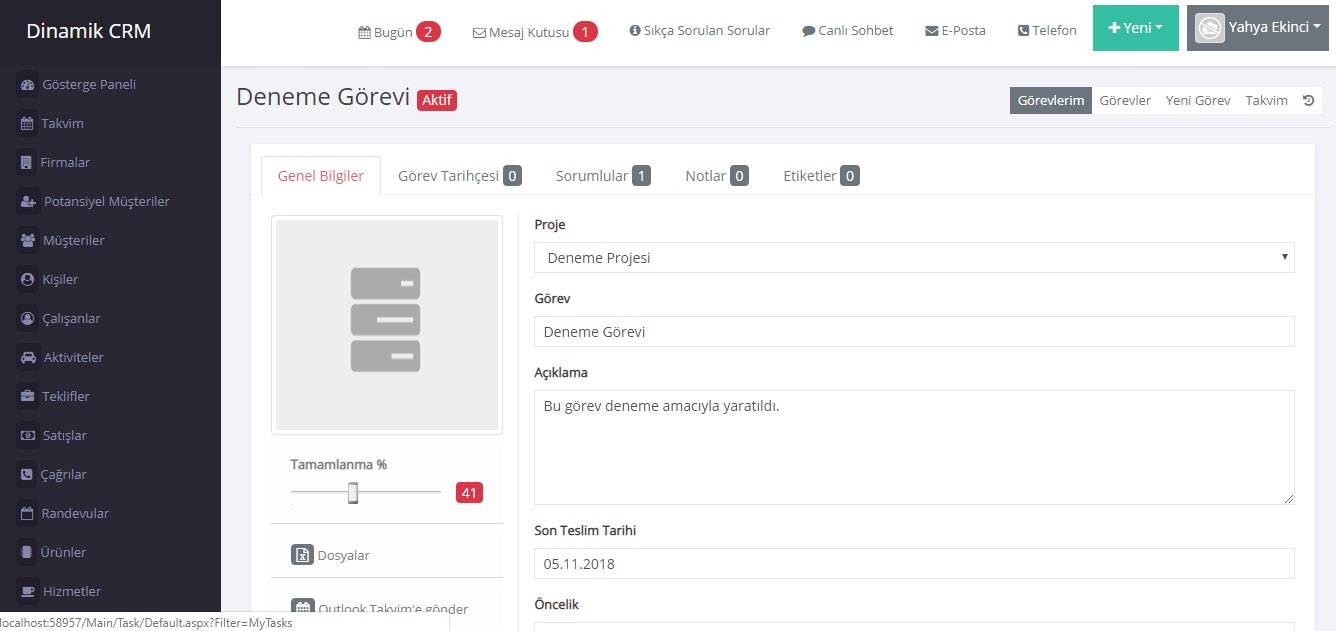Yeni müşteri kazanımı, mevcut müşterileri elde tutma ve kurumsal hafıza eksikliği gibi sorunları ortadan kaldırmak için geliştirilen DinamikCRM, bu sorunları dinamik form yönetimi, hatırlatma servisleri ve firma, kişi ve iletişim yönetimleri ile ortadan kaldırmayı hedefliyor.