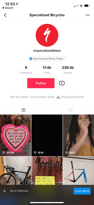 Büyük ihtimalle bu düğme kullanıcıları reklam verenin web sitesine ya da satış sayfasına yönlendirmek için tasarlandı. Ancak Specialized markası "Daha Fazla Bilgi Al" düğmesini şimdilik sadece TikTok profiline yönlendirmek için kullanıyor.