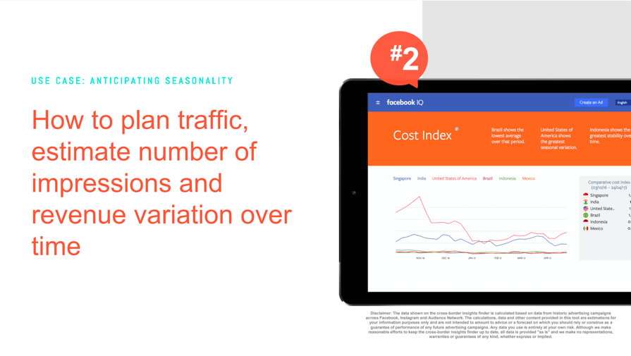 İlk olarak Facebook'un reklam verenlere sunduğu Cross Border Insights Finder aracını tanıtan Akkaya, bu sayede en yüksek erişim ve dönüşümün elde edilebileceği top 5 ülkeye erişilebildiğini aktardı. Aynı şekilde Cross Border Insights Finder üzerinden maliyetin ve rekabetin en düşük olduğu ülkelerin bulunabildiğini de sözlerine ekledi.