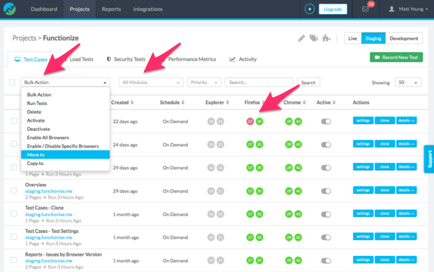 Her testin sonucunda Functionize, tarayıcı, cihaz ve çevre tarafından segmente edilmiş bir performas tablosu sunuyor. Bu performans tablosu, DNS arama süresini, sayfa yükleme hızını ve Functionize,'ın "visual completion" adını verdiği ve kullanıcı deneyiminin her yönünün zamanlama eşiklerini modelleyen özel bir görsel performans metriğini içeriyor.
