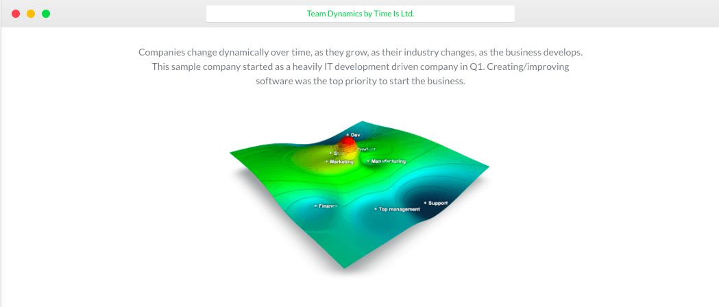 Time is Ltd. iletişim akışını, takvimi, Slack ve diğer verileri daha anlamlı hale getiriyor, bunları kolay bilgilere dönüştürerek şirketlerin verimliliğini artırmayı hedefliyor. Şirketin trendleri ve takım dinamiklerini ortaya çıkarmak için gerçekte nasıl çalıştığını ölçüyor. İş dönüşümü, kurumsal değişiklikler veya satış ekibi performansını takip ederken etkili iş yeri kültürü müdahaleleri oluşturma konusunda çalışanların kendini güçlendirmesine yardımcı oluyor.