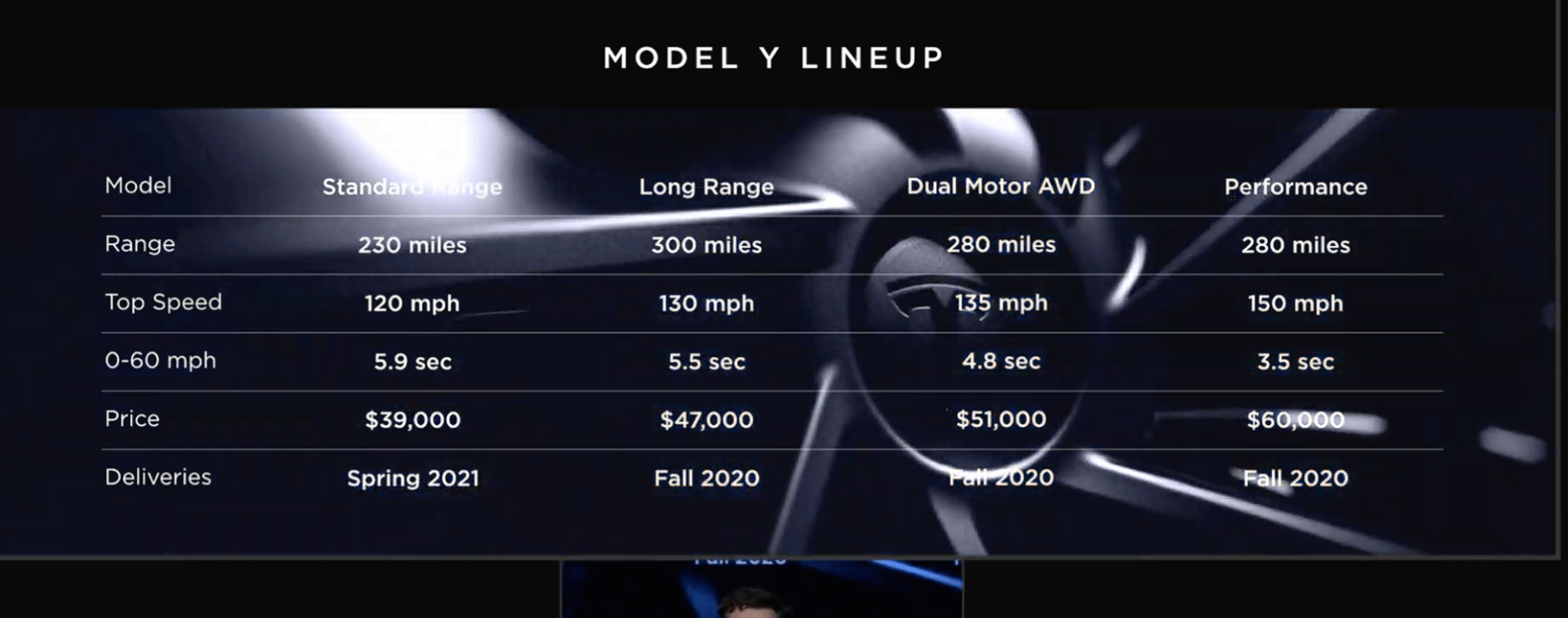 Tesla Model Y’nin daha yüksek performanslı versiyonu da mevcut. Bu versiyonun fiyatı ise 60 bin dolar olarak belirendi. Araç, 0-100 km/sa hızlanmayı 3.5 saniye gibi bir sürede gerçekleştiriyor. Model Y'nin Elon Musk’ın yollarda göreceğimiz beşinci otomobili olarak karşımıza çıkıyor. Araç aynı zamanda, şirketin ana akım elektrikli otomobil pazarına yönelik ikinci girişimi diyebiliriz.