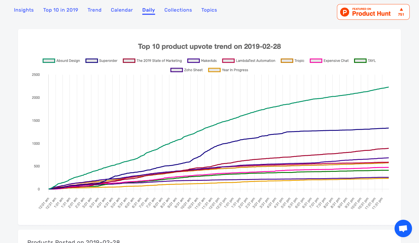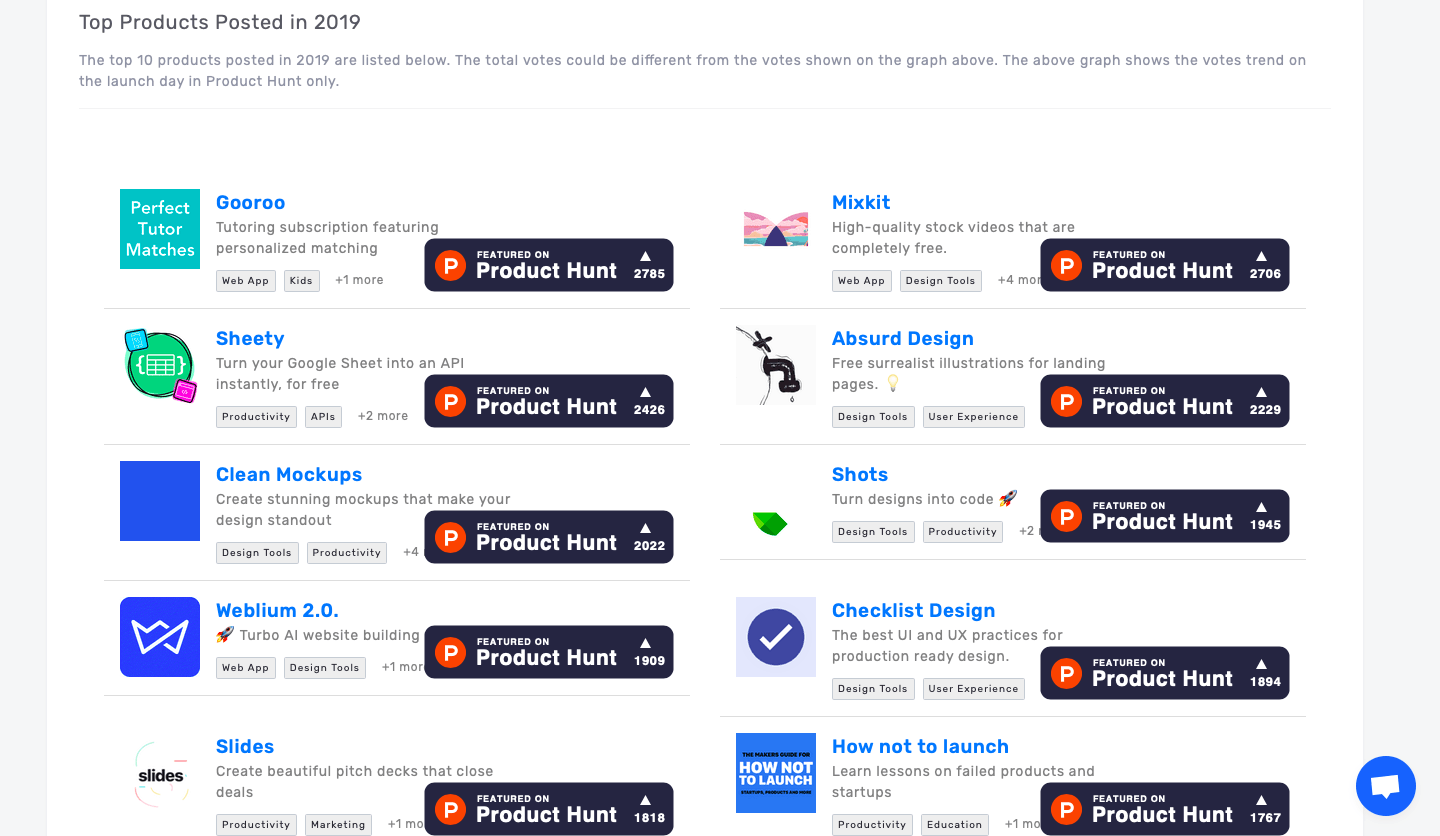 Bunun yanı sıra When to Launch üzerinden 2019'un en iyi 10 aracını öğrenebilir, bu 10 aracın Product Hunt'ta yayınlandıktan sonra ne kadar ilgi gördüğünü gözlemleyebilirsiniz.