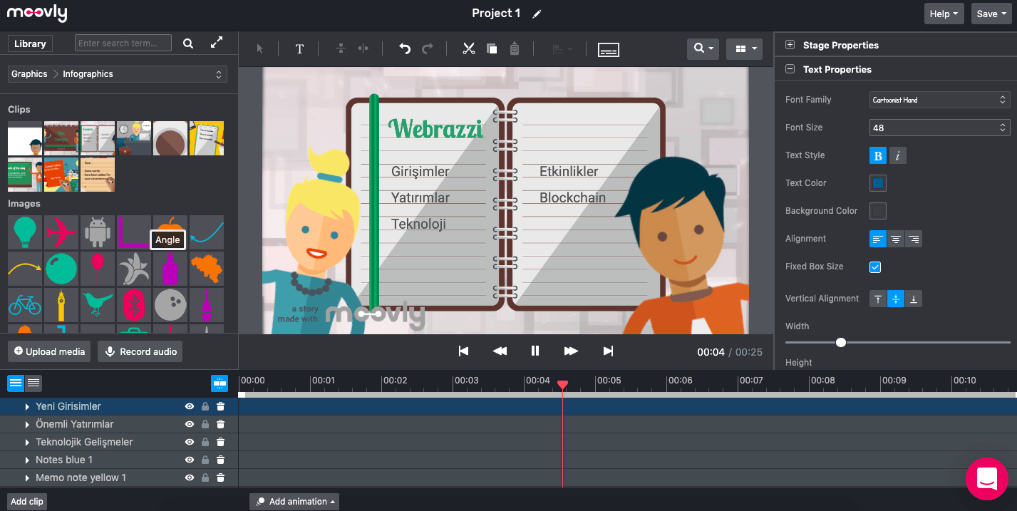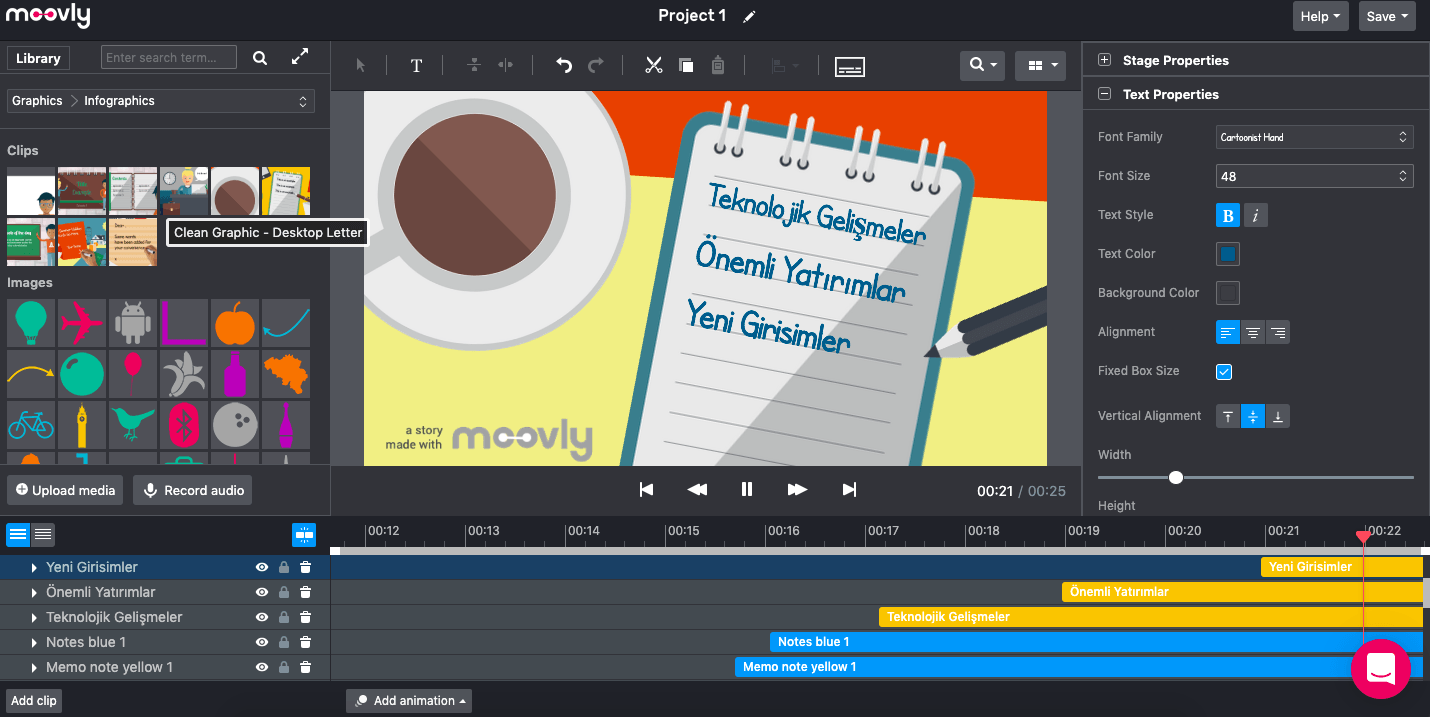 Kullanıcıların multimedya içeriği oluşturmasına yardımcı olan bulut tabanlı bir platform olarak faaliyet gösteren Moovly ile animasyonlu videolar, video sunumları, animasyonlu bilgi grafikleri gibi içerikler oluşturmak mümkün oluyor.