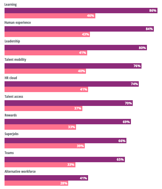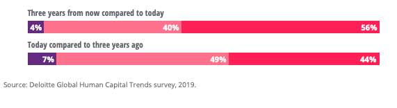Araştırmaya göre, organizasyonlar, sosyal girişimi etkili bir şekilde yönetmenin yollarını ararken, kendilerinin işi yeniden yapılandıran güçlere ve iş gücüne yönelik göstergelere adapte olmaları gerekiyor. Katılımcıların yüzde 86’sı insanların öğrenme yönteminin değiştirilmesinin önemli olduğunu belirtiyor. Öğrenme küresel olarak 2019’un 1 numaralı trendi olarak ortaya çıkarken, bu kategori Türkiye’de yüzde 83’lük oranla üçüncü sırada yer alıyor. Önde gelen organizasyonlar, öğrenmeyi, sadece iş akışına değil, hayatın akışına da entegre edecek yeni araçlara ve insanların sürekli beceri geliştirme ihtiyaçlarına yönelik yatırım yapıyor. Diğer yandan, öğrenmeye vurgu yapılmasına rağmen, araştırmaya katılanların sadece yüzde 10’u, bu konuyu ele almaya "çok hazır", yüzde 36’sı ise “hazır” olduğunu belirtiyor. Türkiye’de ise bu trend için "çok hazır" ve "hazır" olanların oranı sadece yüzde 28.