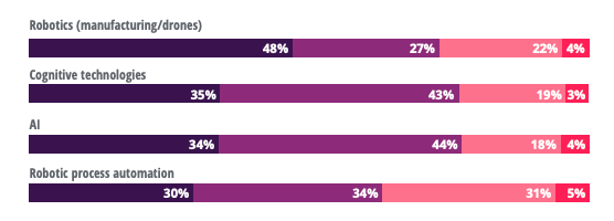 Araştırmaya göre profesyonellerin yüzde 64’ü, otomasyonun insan kaynakları alanında önemli ya da çok önemli olduğunu ifade ediyor. Araştırmaya katılanların yüzde 49’u çalışanlarının veya meslektaşlarının, işlerinin tasarımından memnun ya da çok memnun olduğuna ve yüzde 42’si de çalışanlarının, günlük çalışma uygulamalarından memnun ya da çok memnun olduğuna inanıyor.