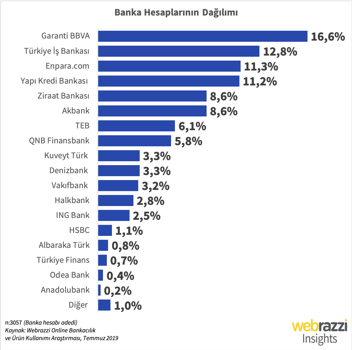 Garanti BBVA, Türkiye İş Bankası ve enpara.com en yoğun kullanılan bankalardır.