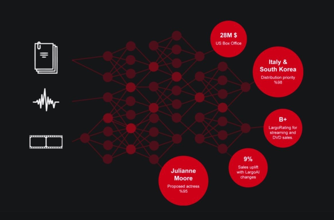 Geliştirdiği yapay zeka teknolojisi sayesinde hangi hikayenin daha başarılı olabileceğini senaryo aşamasında anlayabilen LargoAI, filmin prodüksiyon sürecinde nasıl daha iyi bir hale gelebileceği konusunda tavsiyeler de veriyor. Doğru aktör, ekip ve bütçe seçme konularında önemli tavsiyeler veren LargoAI, video, ses ve metinden bilişsel anlama sistemine sahip çok güçlü bir yapay zeka motoruna sahip.