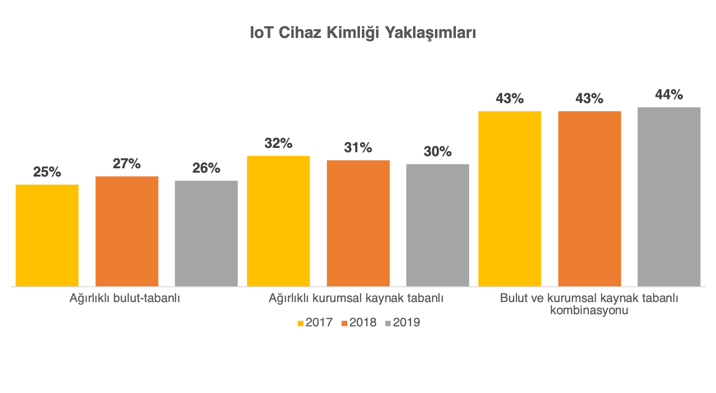 Küresel IoT eğilimleriyle ilgili araştırmaya cevap veren IT güvenliği uzmanlarının üçte ikisinden fazlası, IoT cihazlarının kimlik bilgilerini doğrulamak için en azından yerel olarak kullanılan sistemlerle birlikte bulut sistemini kullanmayı planladıklarını belirtti. IoT cihazları daha yaygınlaştıkça, onları yönetmekten sorumlu olan insanlar için bir sorun teşkil ediyor. Zira IoT cihazları genellikle siber saldırıların hedefidir. Son zamanlarda güvenlik araştırmacılarının açıkladığı istismarlar da saldırıya uğramış tüketici donanımları üzerine kurumsal bağlı cihazları hedeflemeye yöneldiklerini ortaya koyuyor.