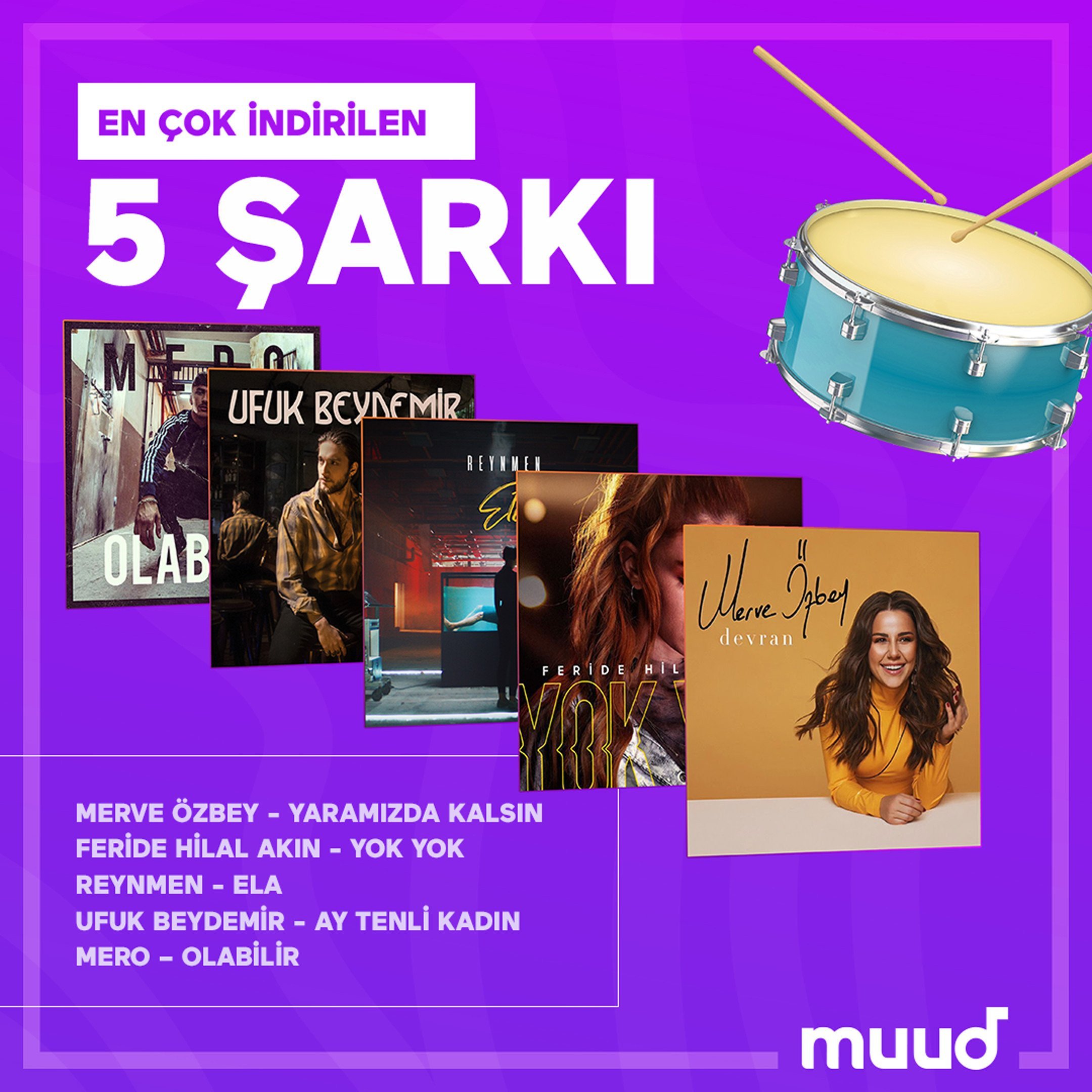 Muud'un yaptığı açıklamaya göre, platformda en çok takip eden müzik listeleri ise; Herkes Bunları Dinliyor, Türkçe Rap, Yerli Yeniler, Türkçe Pop ve Buralar Hep Akustik olarak sıralandı.