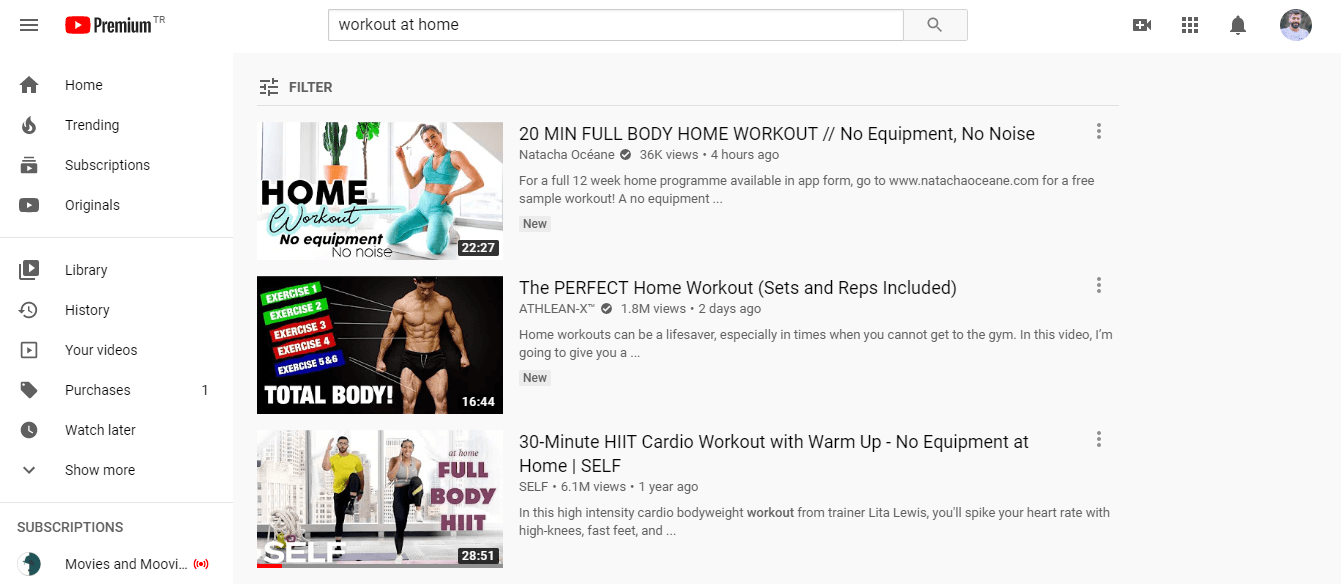 YouTube yine bunun için bulunmaz bir kaynak. "workout at home" aramasıyla karşılaşacağınız seçeneklere inanamayacaksınız. 20 dakikadan ne olabilir ki demeyin, gerçekten terletiyor... YouTube videoları yetmez diyorsanız 17 egzersiz uygulamasını deneyebilirsiniz.