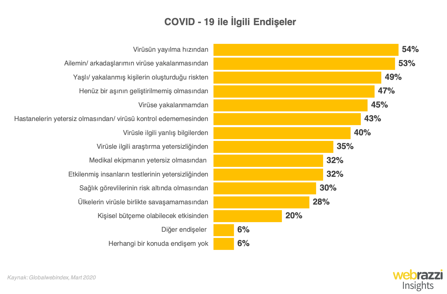 COVID- 19 virüsü ile ilgili vakalar arttıkça sadece fiziksel değil ruhsal sağlık da olumsuz etkilenmekte. Salgının nasıl kontrol altına alınacağı konusundaki belirsizlik, sürekli haber akışının olması, sosyal medyadaki yorumlarla birlikte eve kapanma birçok kişi için endişe, üzüntü ve korku gibi duyguların tetiklenmesine neden oluyor. Yakın zamanda yapılan bir araştırmanın sonuçlarına göre virüsle ilgili belirsizlik birçok konuda endişe doğuruyor. Göreceli olarak farklılıklar olmakla birlikte jenerasyon ya da gelir durumuna göre çok ayrışmayan konularla ilgili sürekli iletişim halinde olmak izolasyon sürecini daha da zorlaştırabilir.