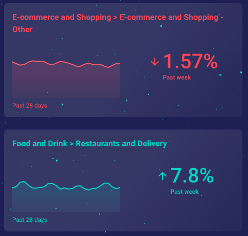 E-ticaret ve alışveriş sektöründe ise geçtiğimiz haftaya oranla yüzde 1,57'lik bir düşüş mevcut. Teslimat sektöründe ise yüzde 7,8'lik bir artış görüyoruz. Evde kalma sürelerinin arttığı bu dönemde bunun şaşırtmayan bir yükseliş olduğunu söyleyebiliriz.