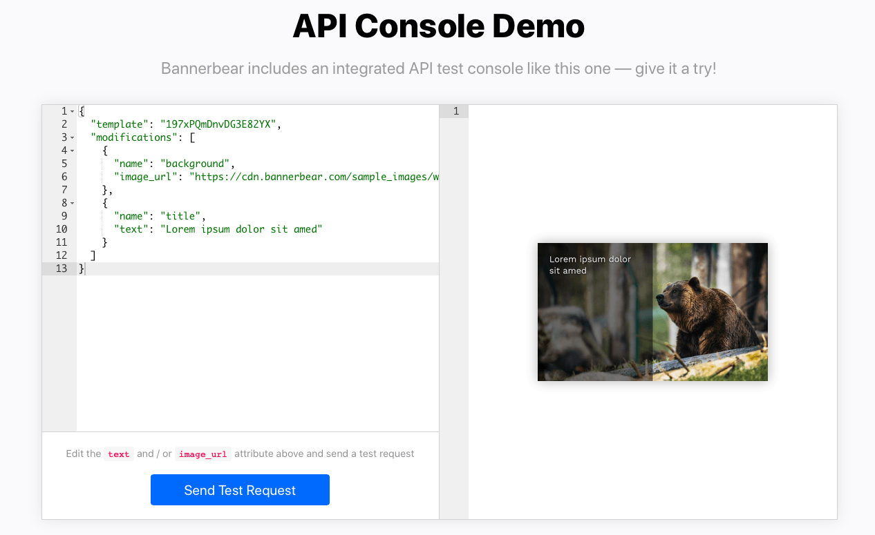 Bir REST API ile güçlü bir tasarım şablon aracını birleştiren Bannerbear ile kampanyanızı Instagram Hikayeler'den Pinterest gönderilerine kadar farklı içerik formatlarına dönüştürmeniz mümkün.