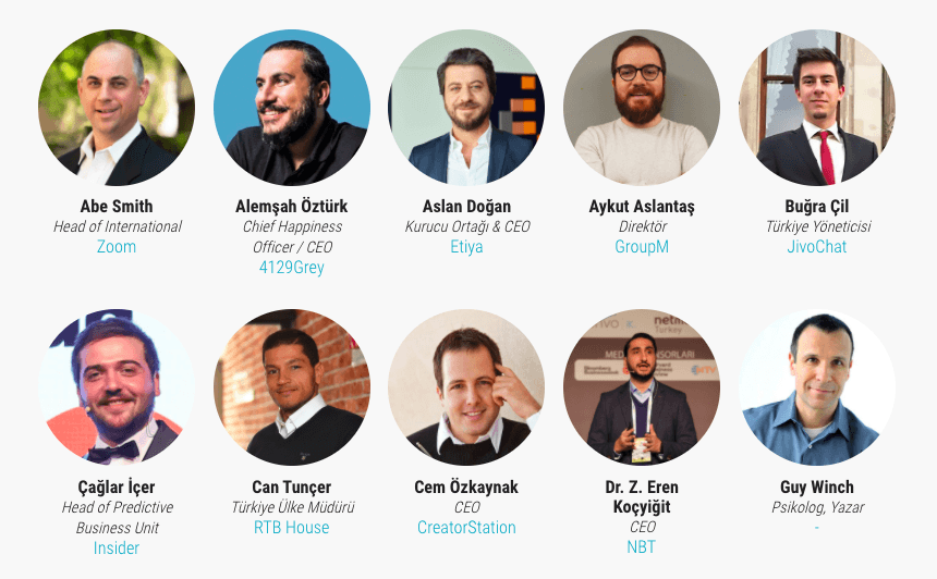 Zoom'da Head of International görevindeki Abe Smith, Etiya'nın kurucu ortağı ve CEO'su Aslan Doğan, GroupM Direktörü Aykut Aslantaş, JivoChat'in Türkiye Yöneticisi Buğra Çil, RTB House Türkiye Ülke Müdürü Can Tunçer, CreatorStation CEO'su Cem Özkaynak, Insider'da Head of Predictive Business Unit görevindeki Çağlar İçer, NBT CEO'su Dr. Z. Eren Koçyiğit, Mosanta CEO'su İlyas Teker, Sherpa'da UX Researcher görevindeki Şüheyda Oğan ve GOOINN'in kurucusu ve UK Director'ı Yavuz Çingitaş Webrazzi Dijital'in yeni konuşmacıları oldu.