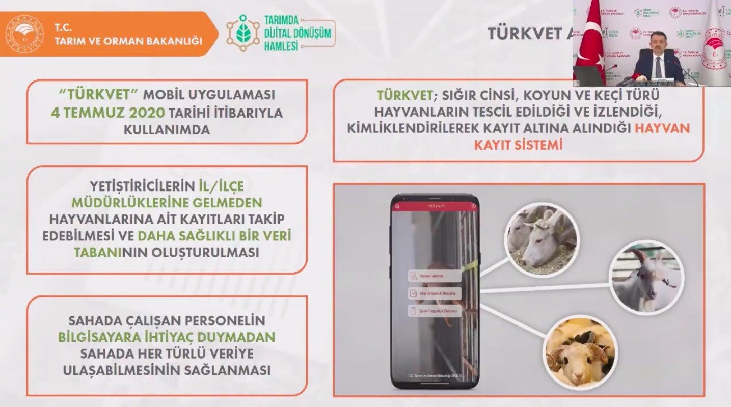 Yetiştiricilerin il/ilçe müdürlüklerine gelmeden hayvanlarına ait kayıtları takip edebilmelerine olanak sağlayan TÜRKVET mobil uygulaması ise paylaşılan bilgilere göre 4 Temmuz 2020 tarihinde kullanıma sunuldu. Bakanlık, orman yangınları ile mücadele konusunda dijital sistemlerden de faydalanıyor. İHA'lar ilk kez askeri operasyonların haricinde orman yangınları için kullanılmaya başlandı.