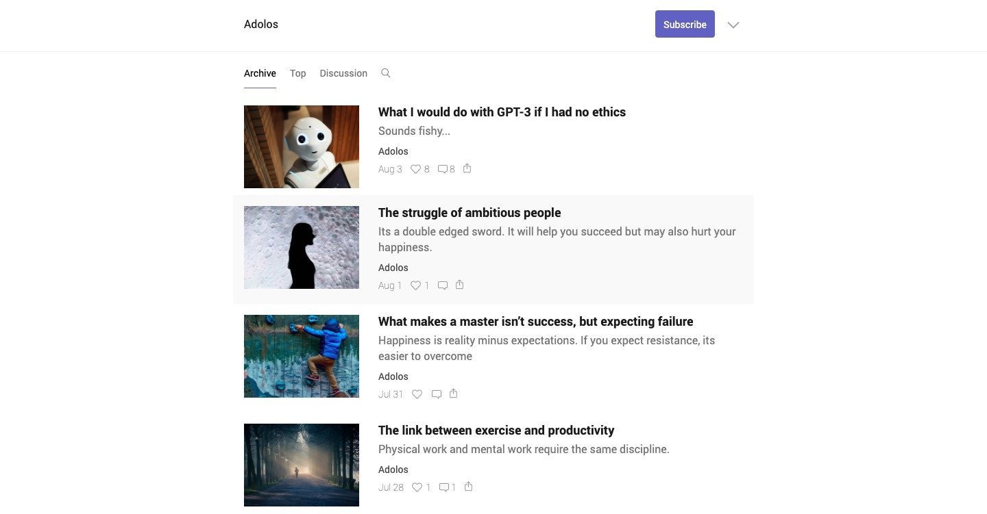 Adolos isimli blog sayfasında Liam Porr'un GPT-3 altyapısını kullanarak oluşturduğu içerikler yer alıyor. GPT-3 ile küçük bir deney yapma maksadı ile yola çıkan Liam Porr, GPT-3 ile oluşturduğu blog sayfasının pek çok insanı kandırabileceğini ve gerçekten bir insan tarafından yazılmış algısı yaratabileceğini düşünüyordu. Bunu test etmek için OpenAI'ın GPT-3 aracını kullanan Liam Porr, düşüncesinde haklı çıktı.