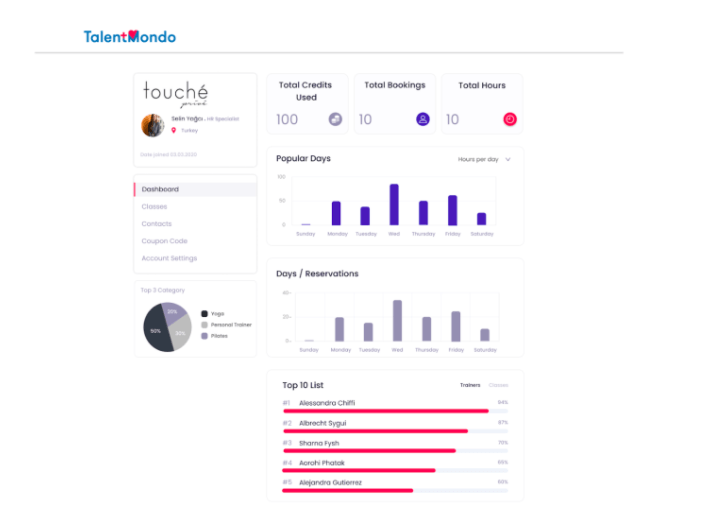 Girişim, bünyesinde yüzlerce global ve profesyonel eğitmen bulunduruyor. Bu anlamda TalentMondo'nun, kullanıcılarına sağlık ve yaşam alanlarında çeşitli canlı dersler sunan bir pazar yeri olduğunu söyleyebiliriz. TalentMondo derslerinden faydalanmak için platforma kayıt olduktan sonra, size sunulan kredi paketlerinden birini seçerek ilerliyorsunuz. Sonrasında ise ilgi alanınıza göre dilediğiniz derslere kayıt olabiliyorsunuz.