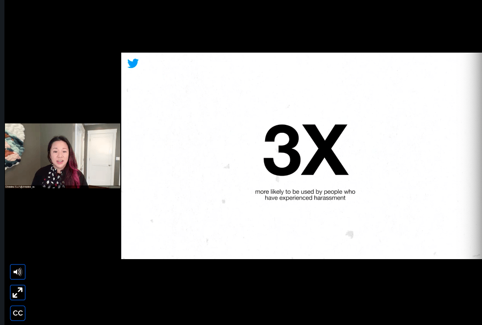 Etkinlikte Twitter'ın kullanıcıların kendilerini güvende hissetmesi için geliştirdiği özelliklere değinildi. Herkesin rahatça konuşabilmesi ve özellikle kadınlar, gazeteciler, aktivistler ya da azınlıklar gibi ötekileştirilenlerin taciz edilmesini engellemek için yaptıklarını aktardı.