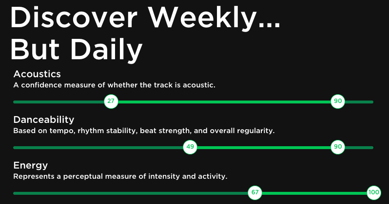 Kişisel olarak şunu söyleyebilirim; Spotify'ın en ilgi çekici listesi, her hafta başında yayınlanan kişiselleştirilmiş "Discover Weekly" yani "Haftalık Keşif" listesi. Fakat 30 şarkıdan oluşan bu liste, benim gibi müzikle yatıp müzikle kalkanlar için ne yazık ki yetersiz kalıyor ve ilk günden tüm şarkıları tüketiyorum. Fakat şimdi, üçüncü parti bir uygulama olan Discoverify, bu soruna çözüm getirdiğini öğrendim. Zira platform, haftalık listeye benzer listeleri, üstelik sizin de belirlediğiniz özelliklere göre günlük olarak oluşturuyor.