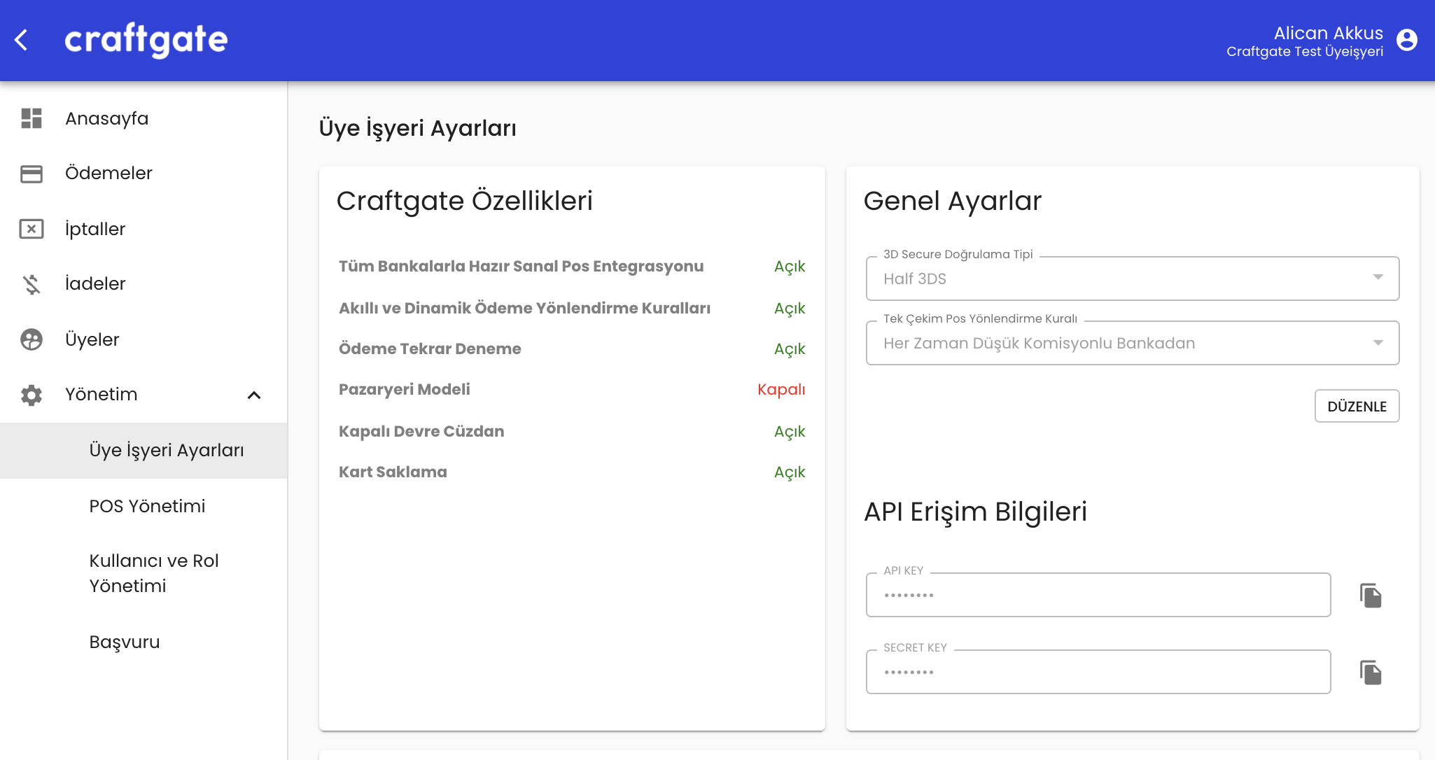 Bulut tabanlı ödeme geçidi Craftgate, işletmelerin, tüm bankaların sanal poslarını tek merkezden kolayca entegre etmesini sağlıyor. Bu sayede, kart saklama, tek tıkla ödeme, pazaryeri çözümü, kapalı devre cüzdan, gelişmiş üye işyeri kontrol paneli, gelişmiş API gibi birçok katma değerli servisten hızlı bir şekilde yararlanabiliyorsunuz.