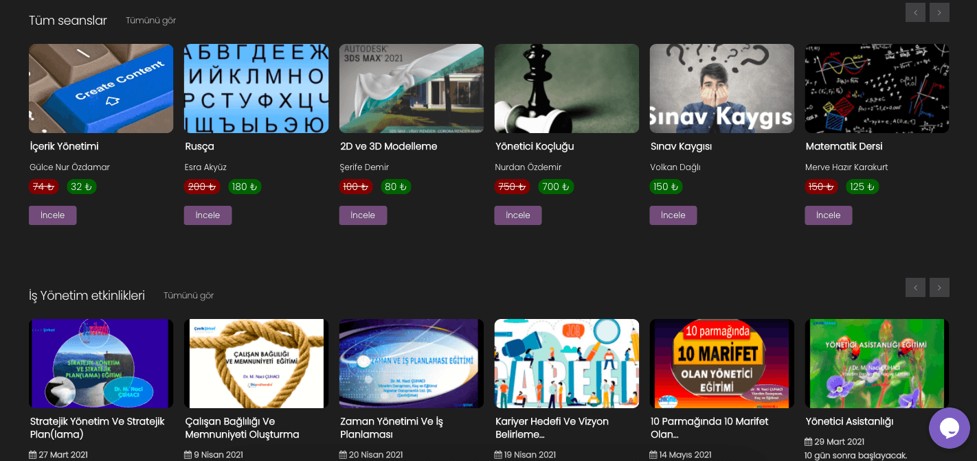 300’e yakın kategoride online canlı görüşme yoluyla etkinlik, eğitim ve bire bir seans hizmetleri verilebiliyor