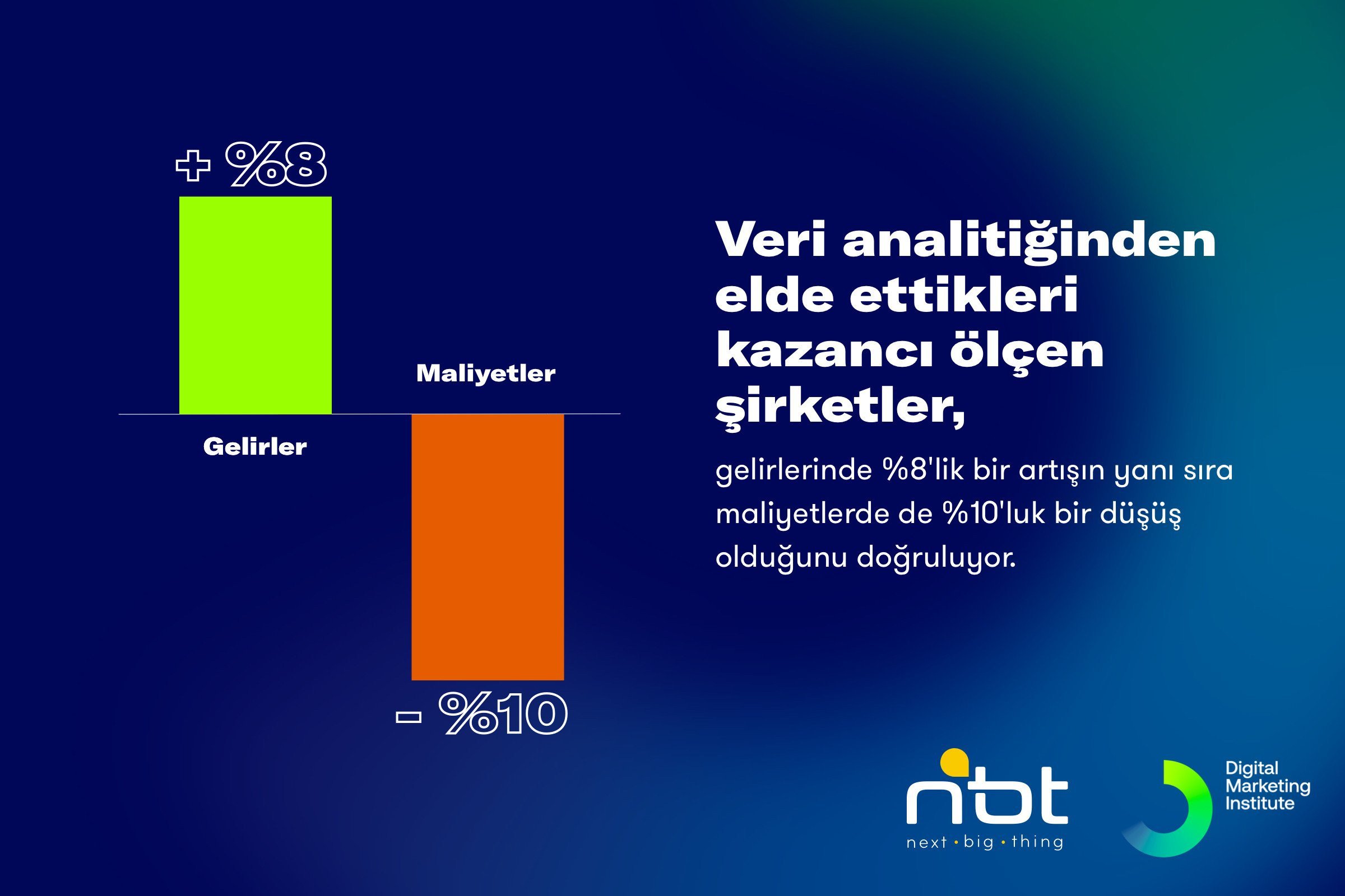 Raporda yer alan bilgilere göre veri analitiğinden elde ettikleri kazancı ölçen şirketler, gelirlerinde yüzde 8'lik bir artışın yanı sıra maliyetlerde de yüzde 10'luk bir düşüş olduğunu doğruluyor. Bu büyüme oranı, pazarlama aksiyonlarında veri odaklı bir yaklaşım benimsenmesinin önemini bir kez daha gözler önüne seriyor.