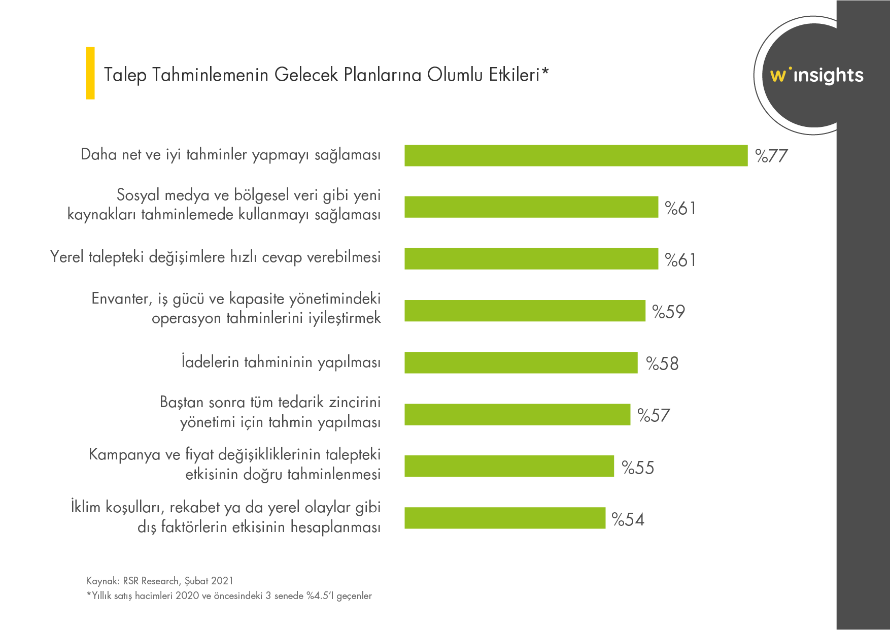 Perakendecilerin tahminleme için kullandıkları araçların kapsamı ve teknolojisi değiştikçe daha iyi öngörüler ile kullanım oranları da birbirine paralel artış gösteriyor. Sektörlerin değişim hızına acele yanıt vermek için perakendecilerin farklı inisiyatifler kullanmaya başlaması kısa ve uzun vadeli planları da etkilerken satış performansına da doğrudan yansıyor.