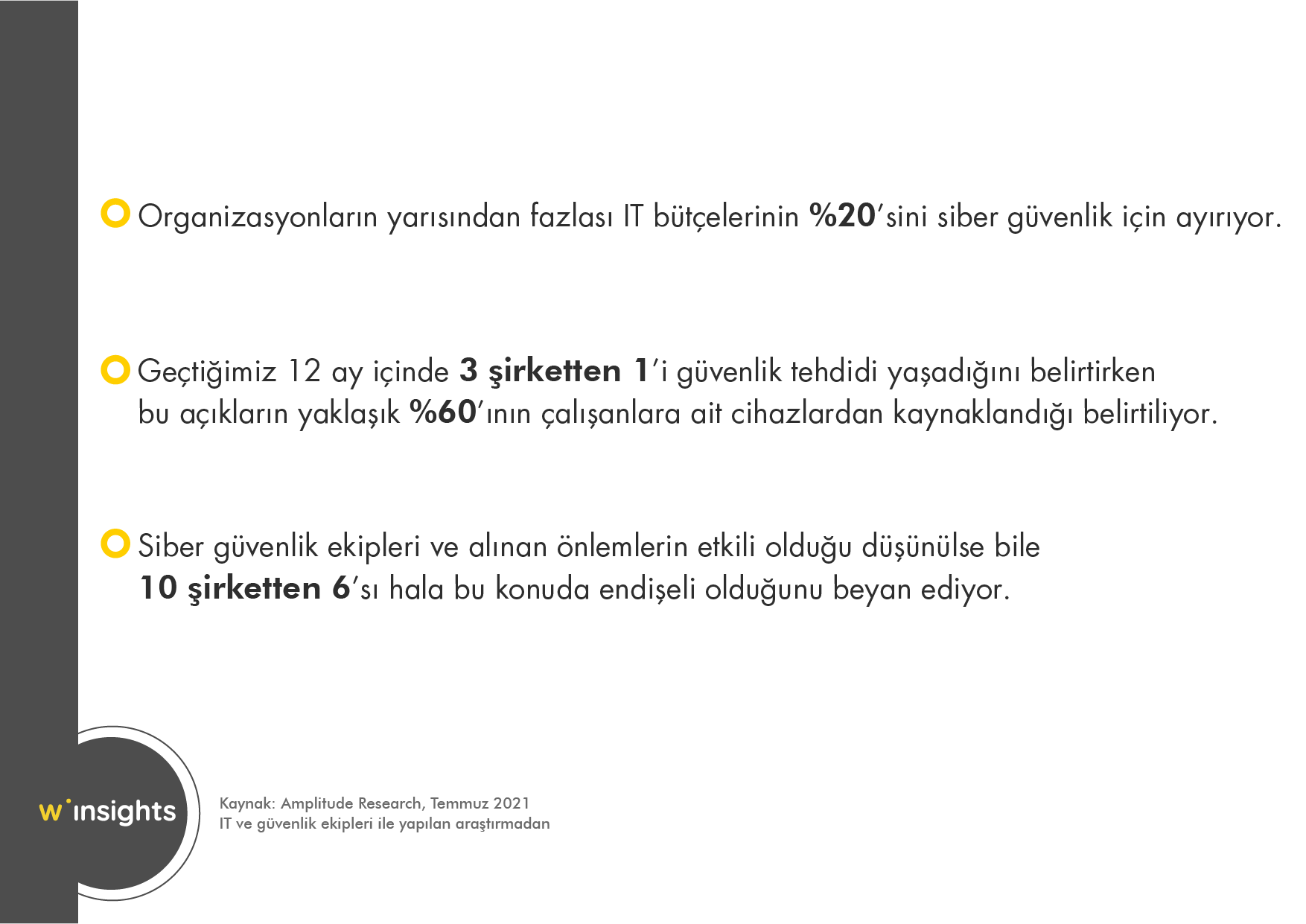 Organizasyonların yarısından fazlası geçmişte en az bir defa güvenlik açığı yaşadığını belirtmekte. Siber güvenlik yatırımları, bu konuda çalışan ekipleri, gelecek stratejileri ve buna yönelik farklı ürünleri olsa da şirketlerin çoğu güvenlik konusunda sorun yaşıyor. İçeriden ya da dışarıdan gelen tehditlere karşı koruma kalkanları olduğu söylense de bir şekilde bazı açıklar nedeniyle güvenlik zafiyetleri oluştuğu ve bu açıkların maddi zararları da beraberinde getirdiğini görmekteyiz.