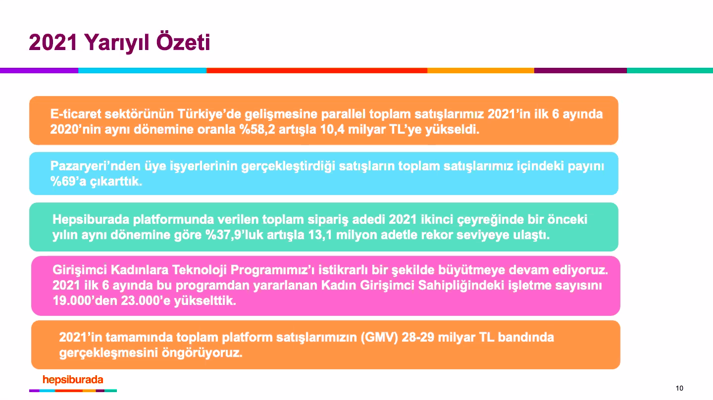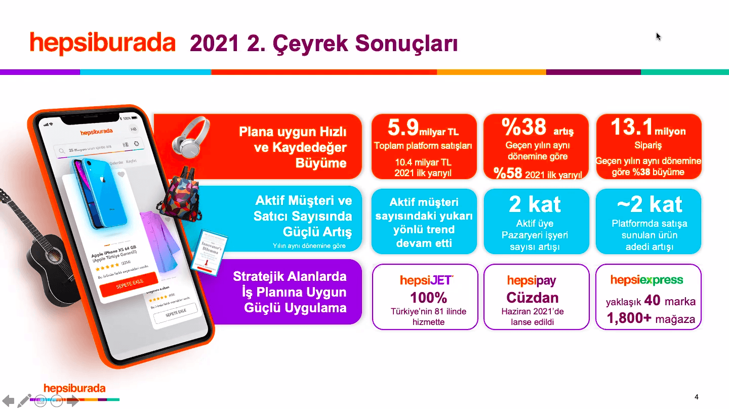 Dünya teknoloji borsası NASDAQ’ta işlem gören Hepsiburada, halka arzdan sonra ilk kez iş sonuçlarını açıkladı. Hepsiburada CEO’su Murat Emirdağ, Hepsiburada’nın NASDAQ halka arzı ile başlayan yeni dönemine ilişkin gelişmeleri, e-ticaret sektörünün ve 2021’in ilk 6 ayının değerlendirmesini bir basın toplantısıyla paylaştı.