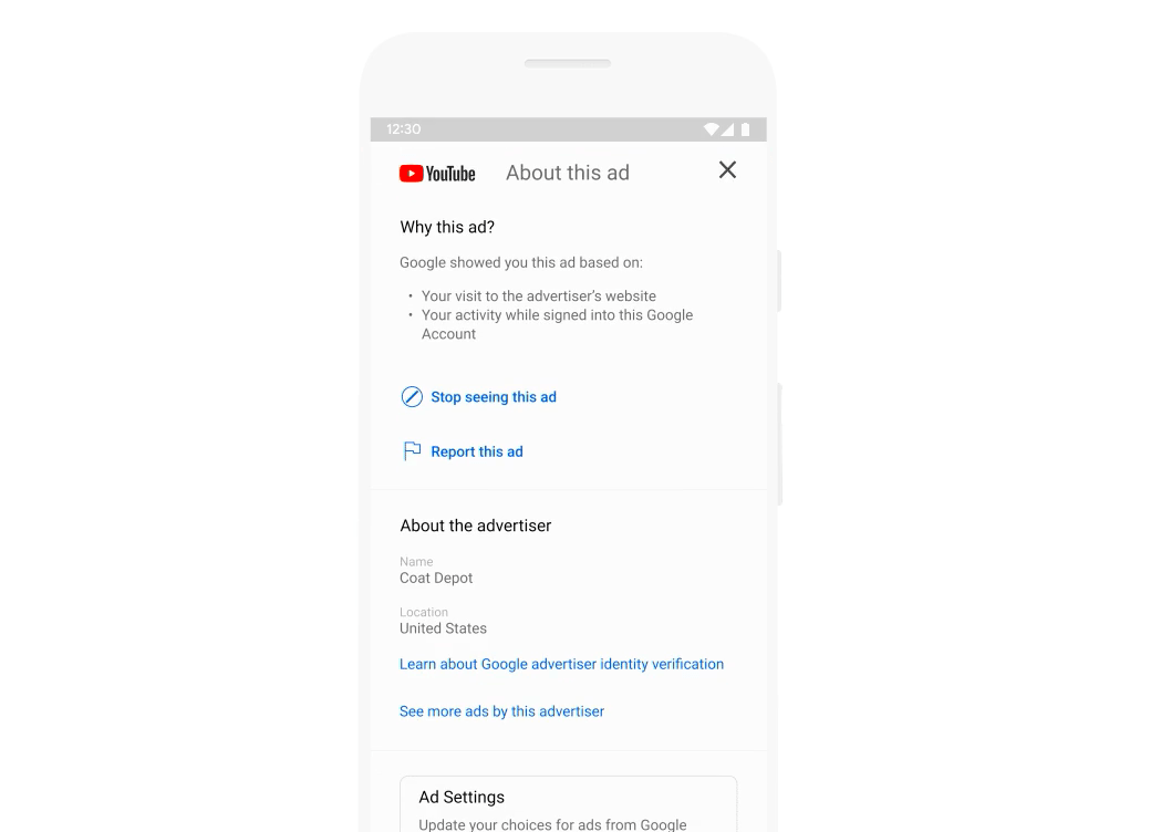 Kullanıcılar, reklamverenin isminin yanı sıra bu reklamın neden kendilerine gösterildiğini görebilecek. Ayrıca Google'ın getirdiği yeni özellikler kapsamında kullanıcıların reklamverenin diğer reklamlarını da görüntüleyebileceğini ekleyelim. Buna ek olarak, izleyicilere reklamı sessize alma seçeneği de sunulacak.
