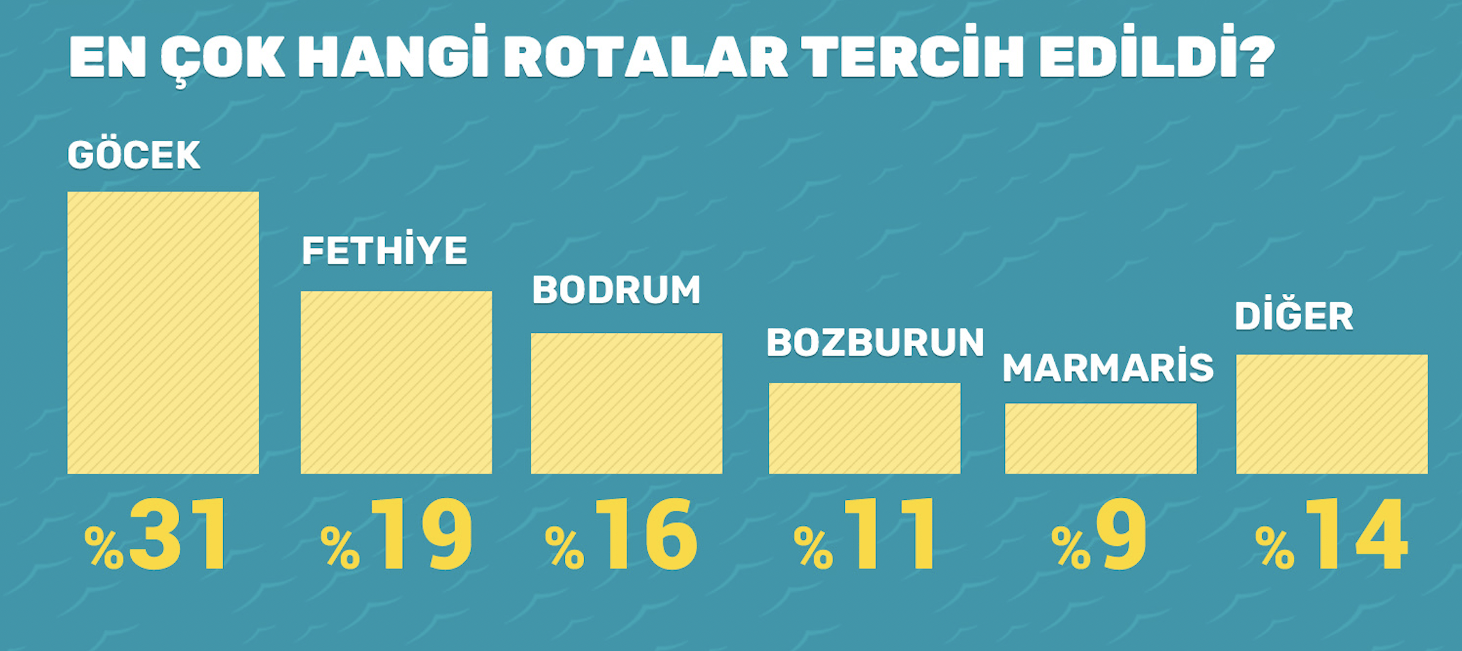Viravira'nın verilerine göre en çok kiralanan tekne tipi ise yüzde 47 ile gulet oldu. Guleti yüzde 25’le yelkenli, yüzde 17’yle motoryat ve yüzde 11’le katamaran takip ediyor. Viravira tarafından aktarılan bilgilere göre Türkiye’deki profesyonel tekne turizmi araç sayısı 5 bin 298 seviyesinde.