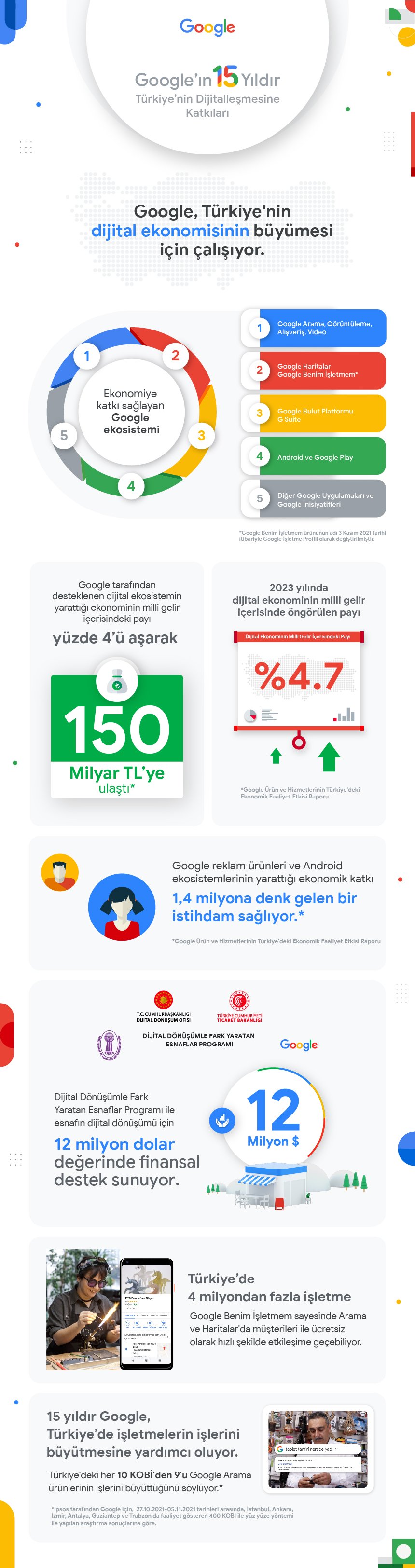 Mehmet Keteloğlu tarafından aktarılan bilgilere göre Google Arama, Görüntüleme, Alışveriş, YouTube, Google Haritalar, Google Benim İşletmem, G Suite, Google Bulut Platformu, Android, Google Play ve diğer Google uygulama ve inisiyatiflerinden oluşan Google tarafından desteklenen Türkiye’deki dijital ekonominin milli gelir içerisindeki payı yüzde 4’ü aşarak 150 milyar TL’ye ulaştı. 2023 yılında ise bu payın yüzde 4,7 seviyelerine ulaşacağı öngörülüyor.