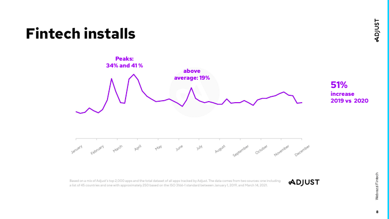 2020 yılında uygulama indirmelerinde tüm dikeylerde yüzde 50'lik bir artış olduğunu belirten Şişman, pandemi başındaki karantina döneminde bu metrikte yüzde 74 artış olduğunu aktardı. Fintech uygulama indirmelerinin ise mart ayında 2020 ortalamasının yüzde 34 ila yüzde 41 arası üzerinde performans gösterdi.