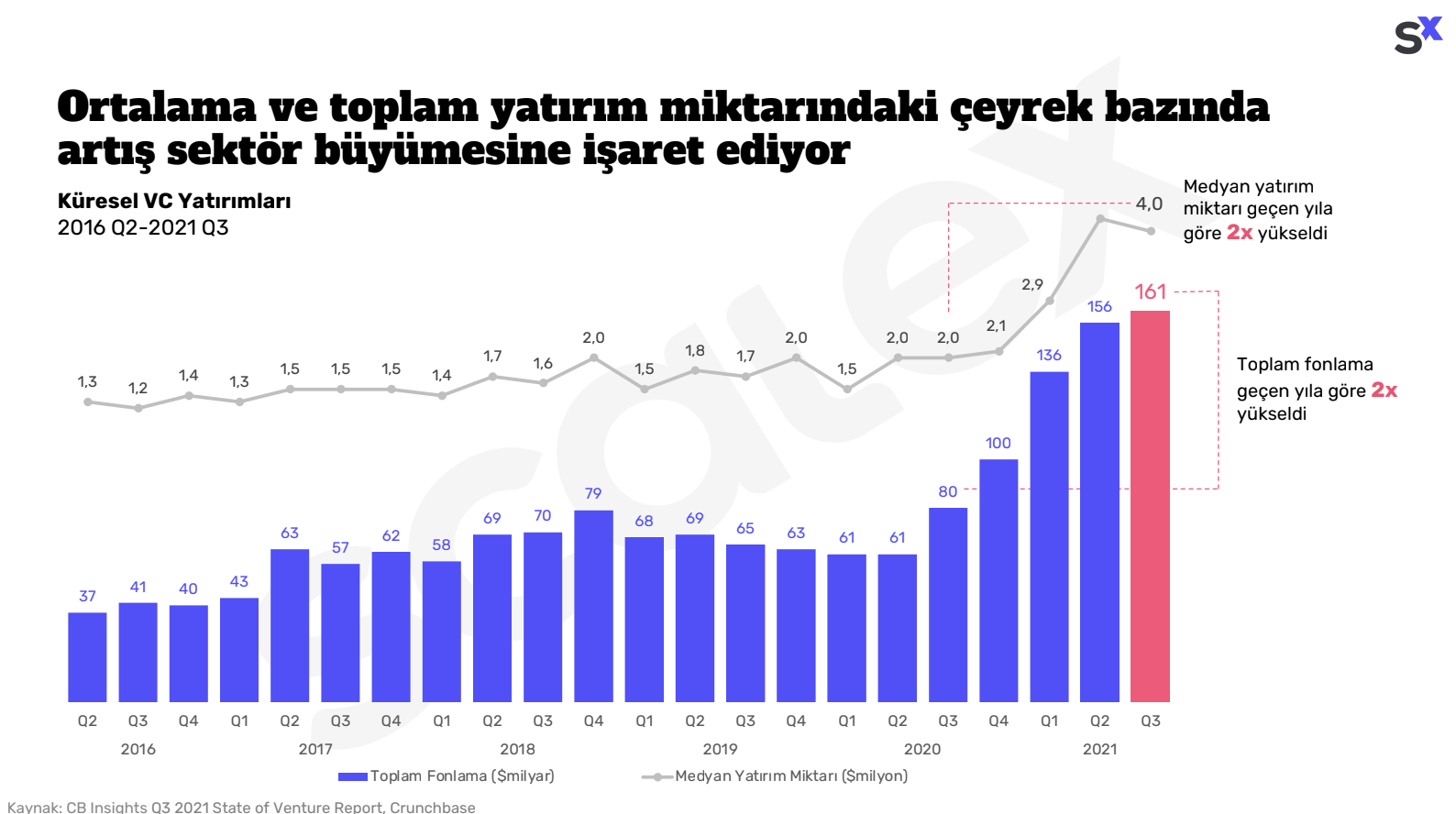 Şirket bugün Yatırım Durum Raporu'nun (Venture Landscape) sonuçlarını açıkladı. Yapılan araştırmaya göre, pandemi sonrası yatırımlar; yatırım getiri oranları ve yazılım şirketlerinin yükselişi ile birlikte önümüzdeki yıllarda artmaya devam edecek. Raporda pandeminin küresel pazarda yarattığı şok etkisi, girişim yatırımlarında gözle görülür bir artışa sebep olduğu ve hem yatırım miktarları hem de yatırım sayısı önemli ölçüde artarak yeni rekorlara imza atıldığı belirtiliyor. Girişim yatırımlarının artmasıyla satın almalar ve birleşme amaçlı ortaklık (SPAC) modellerinde de zirve görüldüğü kaydediliyor.