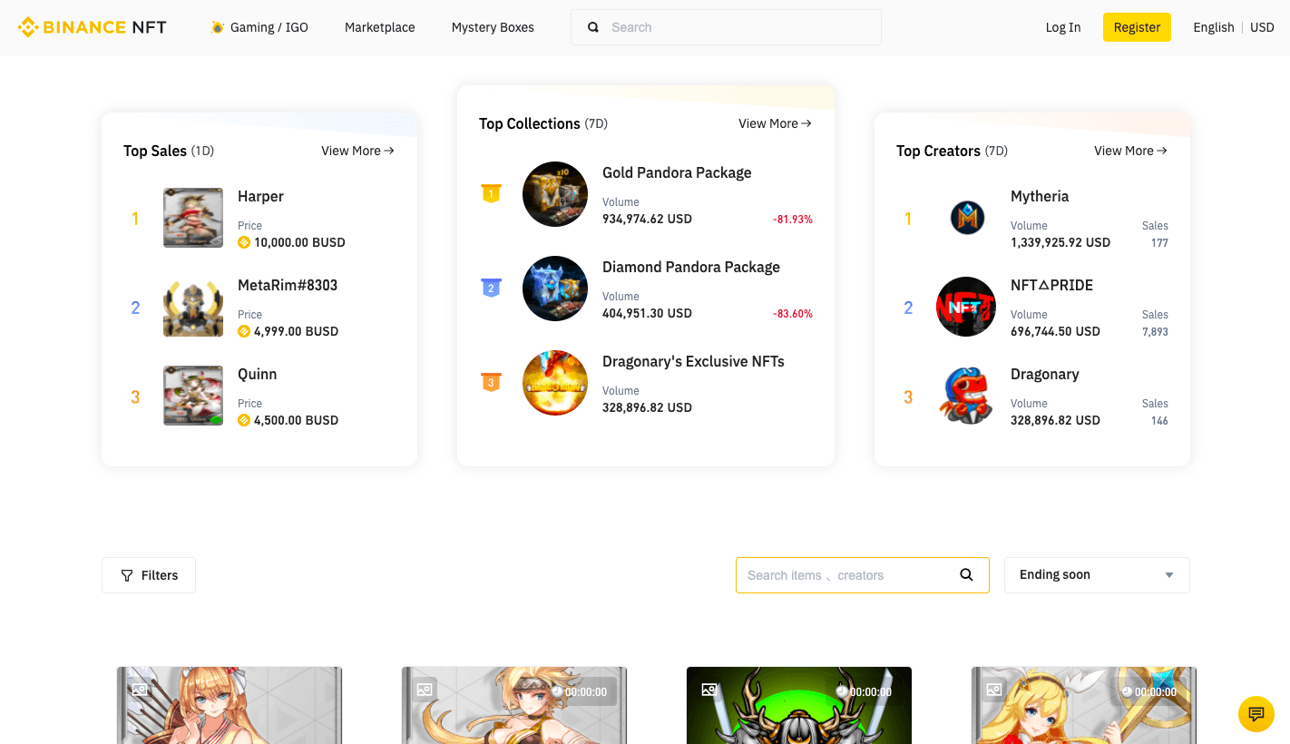 Her ne kadar NFT pazar yeri trendine sonradan katılmış olsa da; Binance NFT en büyük pazar yerlerinden biri olarak konumlanıyor. Özel ortaklıkları ve etkinlikleriyle dikkatleri üzerine çeken Binance NFT; dünyanın en büyük kripto borsalarından Binance'in iştiraki olmasının etkisini yaşıyor. Yüzde 1 gibi düşük gaz ücretleri, resmi para birimleri ve Binance tokenları ile açık artırmalara katılma imkanı sunması pazar yerini ilgi odağı haline getiriyor. Binance Smart Chain üzerinde çalışması da öne çıkan avantajları arasında yer alıyor.