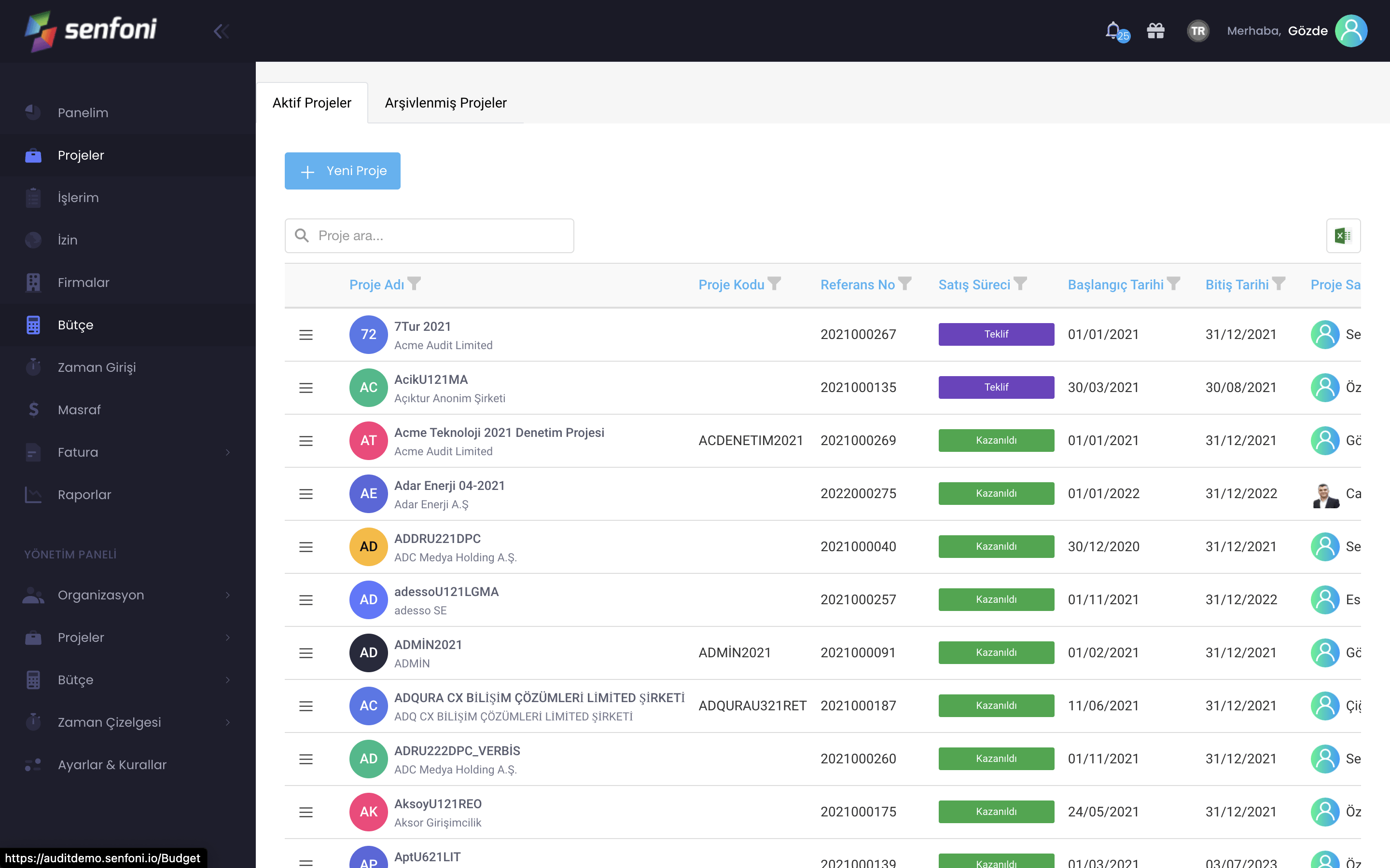 Platform, ücretsiz bir şekilde hizmet vermiyor ve ücret için buradan iletişime geçmeniz isteniyor. Senfoni'yi denediğimde ise oldukça güçlü bir panelin beni beklediğini görüyorum. Zira panelden yapılan işlerinin özetlerinin yanı sıra tüm projeler, yapılan işlerin, alınan izinlerin, firmanın, zaman girişinin, masraf ve faturaların tamamına ulaşmak mümkün. Senfoni ayrıca kullanıcıya müşteri bazlı zaman dağılımı, zaman çizelgesi takip raporu, detaylı zaman çizelgesi raporu, finansal özet raporu, fatura raporu, proje özet raporu, toplam çalışma süreleri raporu, aylık kullanılan izin raporu, iş durum raporu gibi birçok rapor sunuyor.
